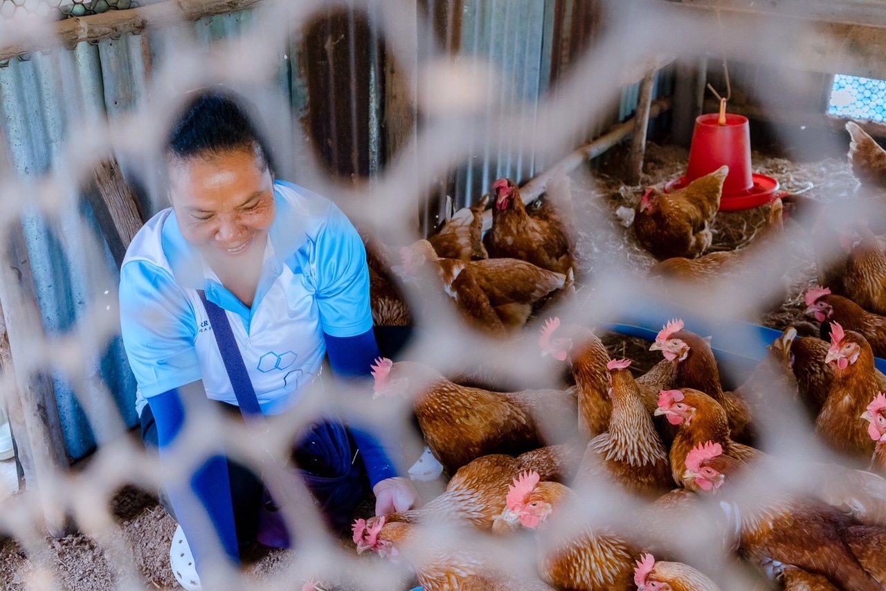 คุณดอกไม้ เล่าเสริมว่า หลังที่ได้เข้าร่วมโครงการนี้ ชีวิตความเป็นอยู่ดีขึ้น ได้ไข่ไก่มาหมุนเวียนในครอบครัว โดยไม่ต้องเสียเงินซื้อไข่แล้ว และยังมีรายได้เสริมจากการขายไข่ไก่อีกด้วย นอกจากนี้ยังได้ต่อยอดไปปลูกผักกินเองในครัวเรือน ทำให้ลดค่าใช้จ่ายลงไปได้อีก ที่สำคัญทำให้สุขภาพจิตดีขึ้น ไม่เครียด มีงานให้ทำทุกวัน ชีวิตมีความหมายมากขึ้นกว่าเดิม