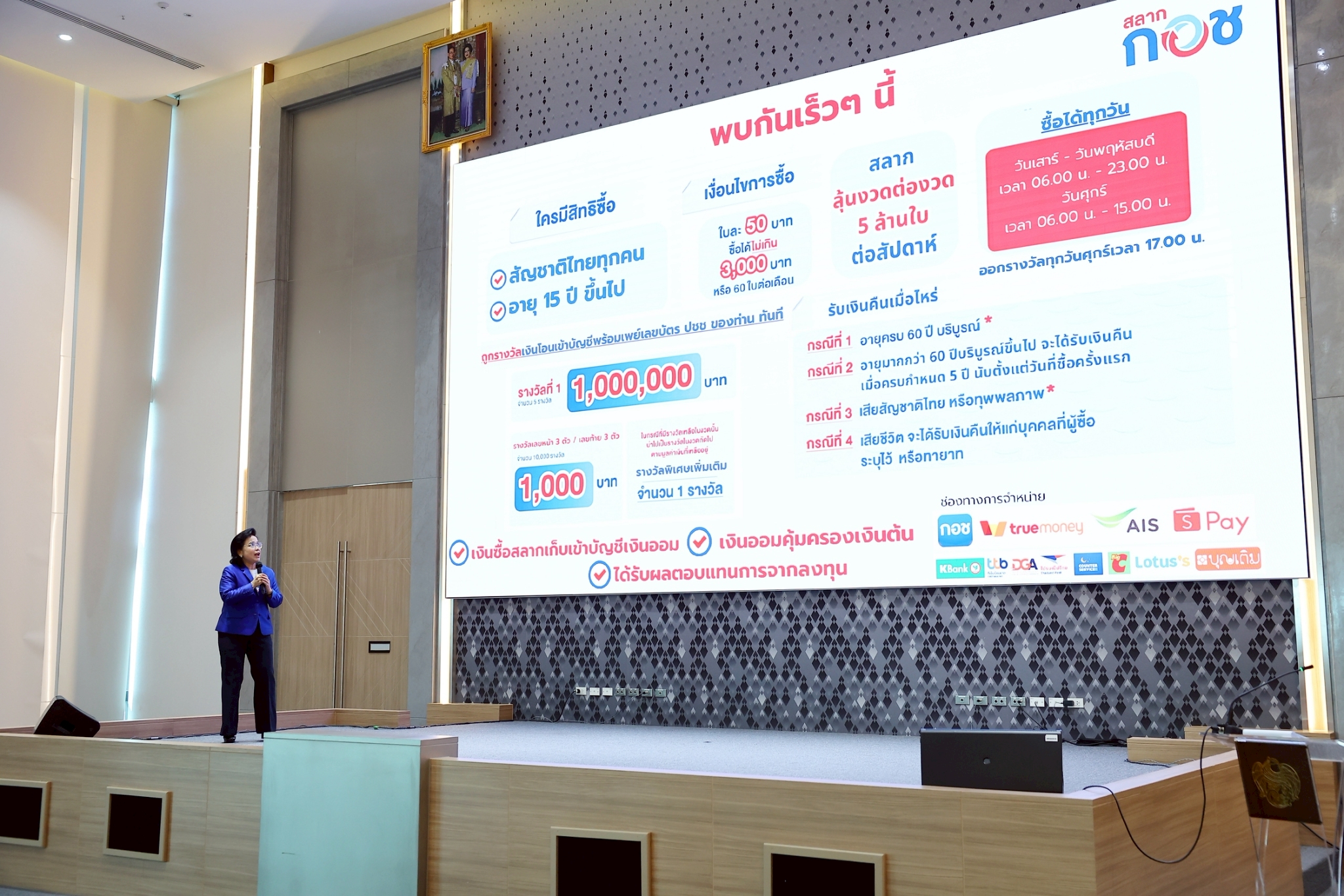 นายเศรษฐจักร ลียากาศ ผู้ช่วยเลขานุการรัฐมนตรีว่าการกระทรวงการคลัง กล่าวว่า ข้อมูลจากธนาคารแห่งประเทศไทย ชี้ว่า คนไทยออมเงินเฉลี่ยเพียง 8% - 10% ของรายได้ ซึ่งจากคำแนะนำของธนาคาร แห่งประเทศไทย ควรออม 20% - 25% นอกจากนี้ กว่า 88% ของประชากรไทยมีเงินฝากไม่ถึง 50,000 บาท ส่วนหนึ่งเพราะรายได้แทบทั้งหมดถูกใช้จ่ายไปกับค่าใช้จ่ายที่จำเป็น นี่คือปัญหาที่น่ากังวล และต้องการนวัตกรรมใหม่ๆ มาแก้ไขอย่างเร่งด่วน นอกจากนี้ คนไทยจำนวนมากชอบเสี่ยงโชค และมีความคุ้นเคยกับการซื้อสลาก ดังนั้น การผลักดันโครงการ “สลาก กอช.” ของกองทุนการออมแห่งชาติ (กอช.) จึงเป็นทางเลือกสำคัญที่มุ่งหวังให้เป็น “สะพานเชื่อมระหว่างการลุ้นรางวัลและการสร้างเงินออม” เปลี่ยนมุมมองการออมไม่ใช่ภาระ แต่คือการลงทุนเพื่ออนาคต ภายใต้แนวคิด “ศุกร์ได้ลุ้น - สุขได้ออม” โดยเงินทุกบาทที่ซื้อสลาก จะถูกเก็บเป็นเงินออมทั้งหมด