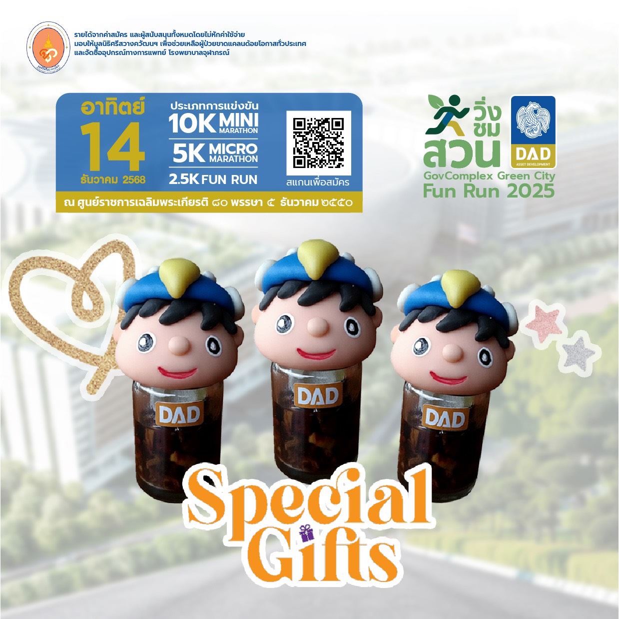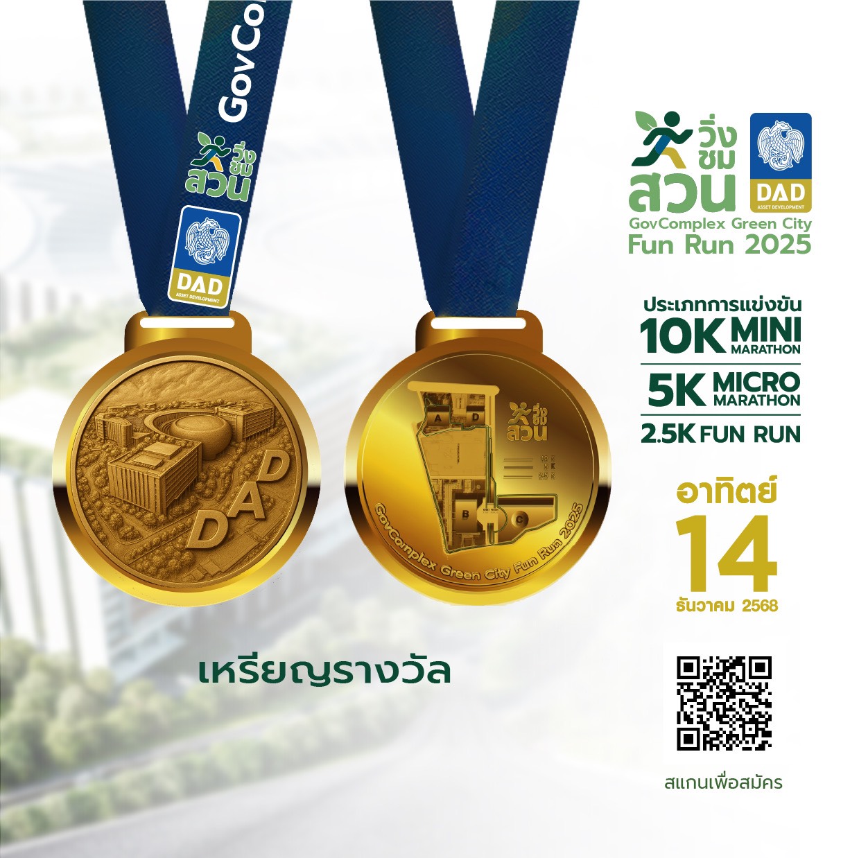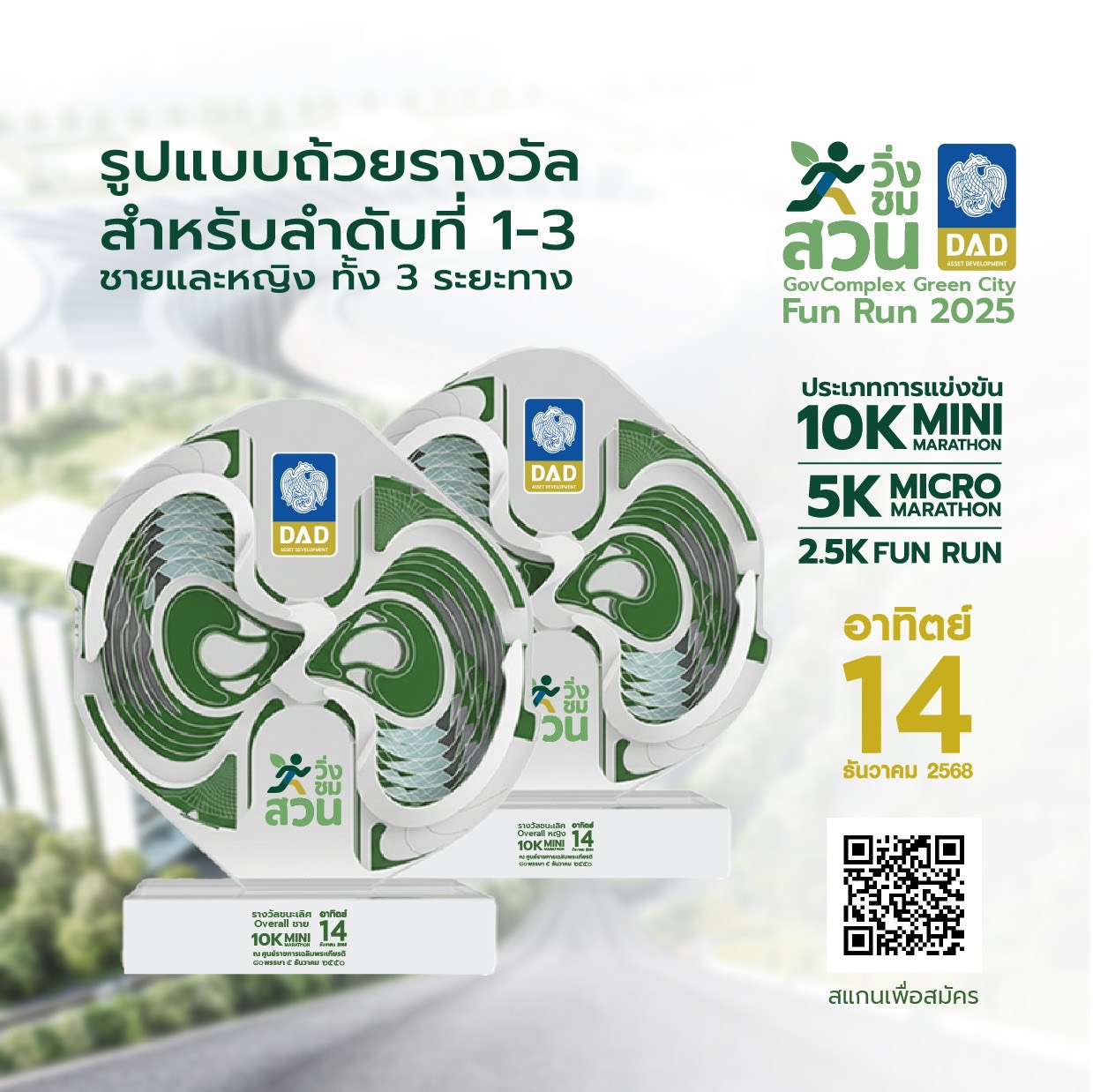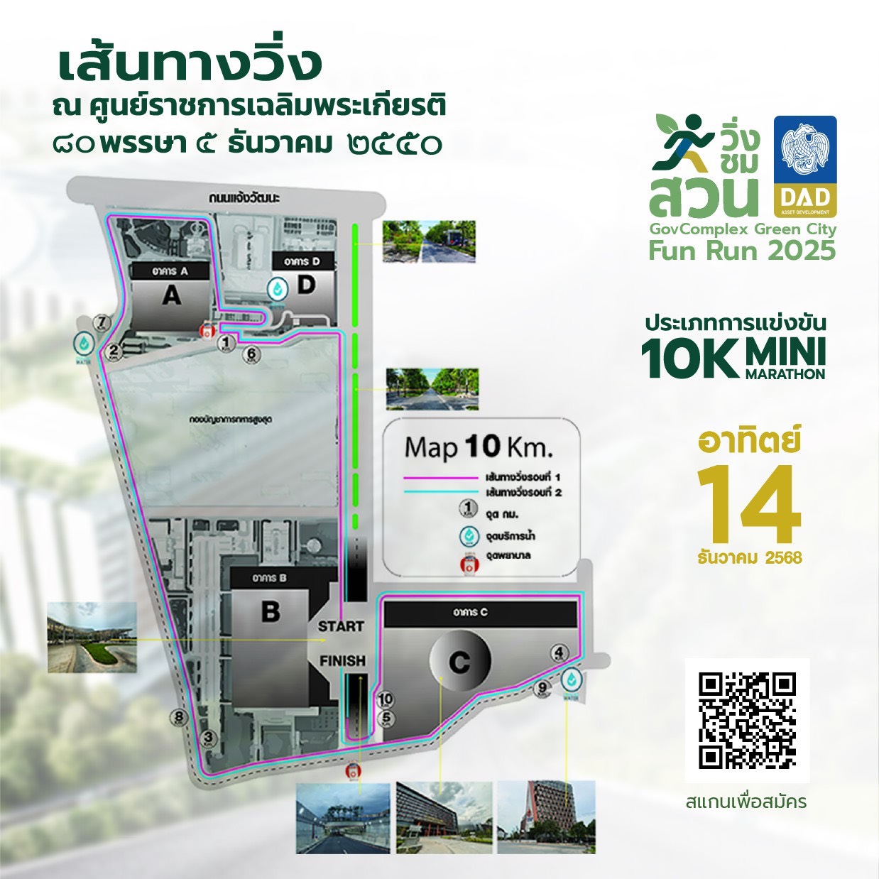ธพส.โชว์ความสำเร็จพัฒนาพื้นที่ศูนย์ราชการเฉลิมพระเกียรติฯ สู่เมืองสีเขียวกว่า 138 ไร่ ชวนประชาชนทดลองใช้พื้นที่ และสร้างประสบการณ์ใหม่ด้วยกิจกรรมมินิมาราธอน“วิ่งชมสวน : GovComplex Green City Fun Run 2025” นัดหมาย 14 ธันวาคม 68 พร้อมเปลี่ยนทุกก้าวเป็นพลัง สมทบทุนมูลนิธิศรีสวางควัฒนฯ เพื่อผู้ป่วยด้อยโอกาสทั่วประเทศ-จัดซื้ออุปกรณ์ทางการแพทย์ รพ.จุฬาภรณ์ เปิดรับสมัครตั้งแต่วันที่ 22 ตุลาคม เป็นต้นไปที่ http://race.thai.run/govgreencityfunrun2025