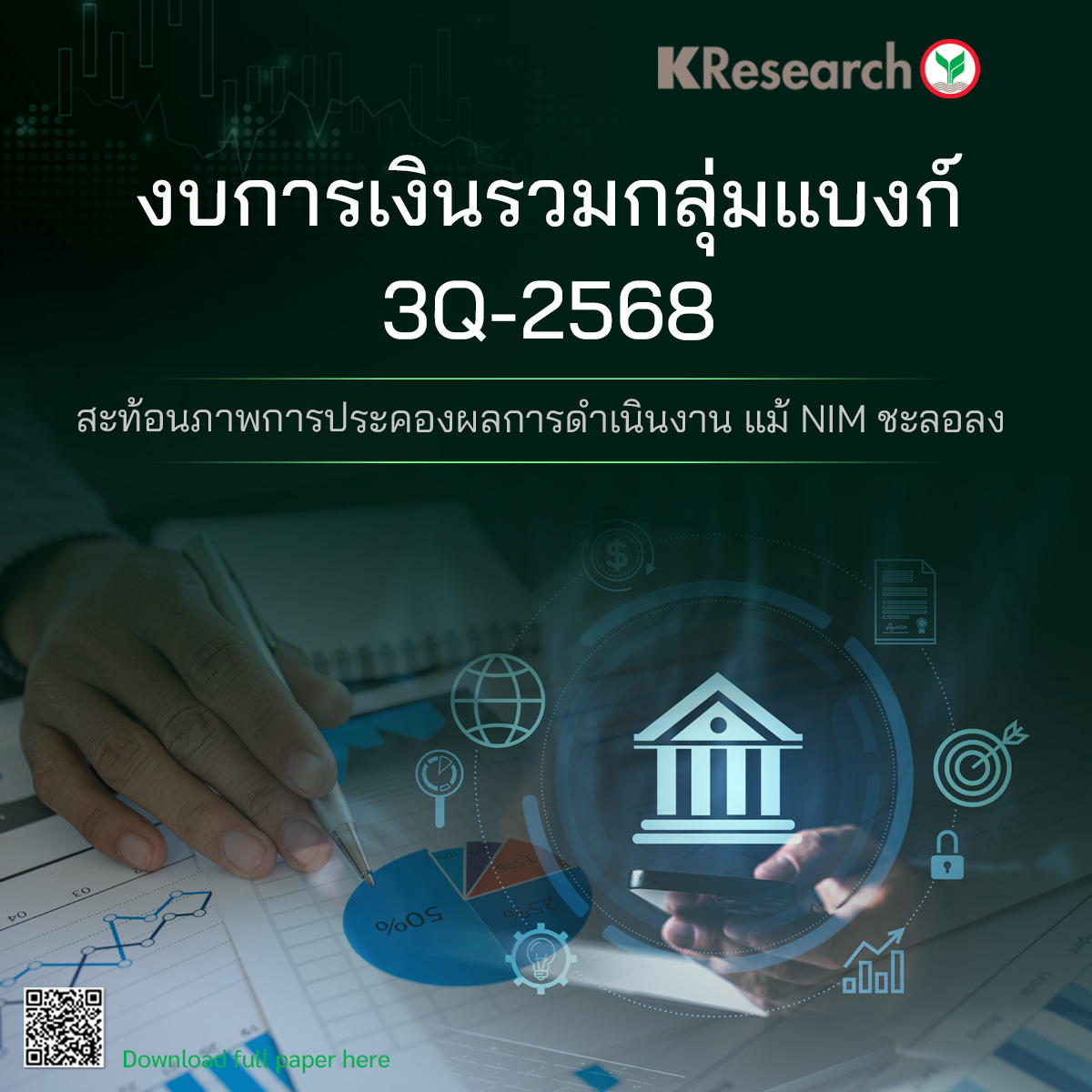 · แม้รายได้จากธุรกิจหลักยังคงอ่อนแอ แต่กลุ่มแบงก์ยังสามารถประคองผลการดำเนินงานไว้ได้ในไตรมาส 3/2568 เนื่องจากมีแรงหนุนจากกำไรจากเงินลงทุน การเพิ่มขึ้นของ FVTPL และรายได้ค่าธรรมเนียมที่เชื่อมโยงกับสภาวะตลาดเงินตลาดทุน