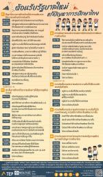 ด้านประเด็นการศึกษาที่ประชาชนต้องการให้รัฐบาลชุดใหม่ทำทันที พบว่า ตัวอย่าง ร้อยละ 44.27 ระบุว่า ปรับหลักสูตรและการเรียนรู้ให้ทันสมัย สามารถนำไปใช้ได้จริง รองลงมา ร้อยละ 44.05 ระบุว่า ลดค่าใช้จ่ายทางการศึกษา เรียนฟรีจริงถึง ม.6 ร้อยละ 37.86 ระบุว่า ปรับหลักสูตรให้นักเรียนได้ฝึกทักษะและมีประสบการณ์ ที่จำเป็นต่อการทำงานจริงในอนาคต ร้อยละ 35.95 ระบุว่า เพิ่มโอกาสและความเท่าเทียมทางการศึกษาให้เด็ก ทุกกลุ่ม ร้อยละ 24.05 ระบุว่า ทำให้โรงเรียนเป็นพื้นที่ปลอดภัยสำหรับเด็ก รวมถึงการดูแลสุขภาพจิตของนักเรียน และยกระดับคุณภาพครูและผู้อำนวยการโรงเรียน รวมถึงสมรรถนะและความโปร่งใส ตรวจสอบได้ ในสัดส่วน ที่เท่ากัน ร้อยละ 21.60 ระบุว่า ลดภาระที่ไม่จำเป็นของครู รวมถึงเพิ่มแรงจูงใจให้คนเก่งอยากเป็นครูมากขึ้น ร้อยละ 14.66 ระบุว่า ปรับระบบการวัดผล ไม่เน้นคะแนนจากการสอบ ร้อยละ 9.92 ระบุว่า สนับสนุนให้โรงเรียนในแต่ละพื้นที่มีอิสระในการออกแบบการเรียนรู้ได้ด้วยตนเอง ร้อยละ 5.88 ระบุว่า ส่งเสริมการเรียนรู้ตลอดชีวิต Re-skill Up-skill และ New skill สำหรับคนทุกวัย และร้อยละ 1.15 ระบุว่า ไม่ทราบ/ไม่ตอบ