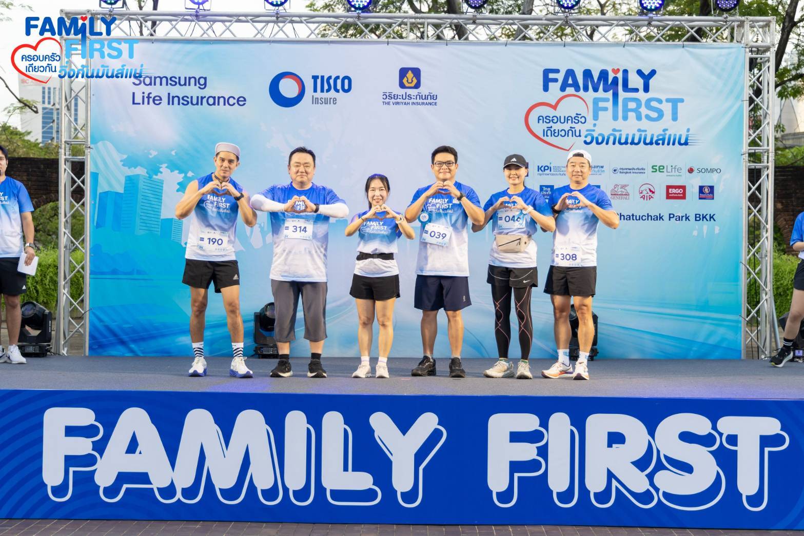 อย่างไรก็ดี กิจกรรม Family First ครอบครัวเดียวกัน วิ่งกัน มันส์แน่! ในครั้งนี้ มีบริษัทประกันชีวิตและบริษัทประกันวินาศภัยเข้าร่วมทั้งสิ้น 18 บริษัท ประกอบด้วย บริษัท วิริยะประกันภัย จํากัด (มหาชน) บริษัท ซัมซุง ประกันชีวิต (ประเทศไทย) จำกัด (มหาชน) บริษัท กรุงเทพประกันภัย จำกัด (มหาชน) บริษัท กรุงเทพประกันชีวิต จำกัด (มหาชน) บริษัท กรุงไทยพานิชประกันภัย จำกัด (มหาชน) บริษัท คุ้มภัยโตเกียวมารีนประกันภัย (ประเทศไทย) จำกัด (มหาชน) บริษัท เจนเนอราลี่ ประกันชีวิต (ไทยแลนด์) จำกัด (มหาชน) บริษัท ซมโปะ ประกันภัย (ประเทศไทย) จำกัด (มหาชน) บริษัท โตเกียวมารีนประกันชีวิต (ประเทศไทย) จำกัด (มหาชน) บริษัท ไทยประกันชีวิต จำกัด (มหาชน) บริษัท ธนชาตประกันภัย จํากัด (มหาชน) บริษัท นวกิจประกันภัย จํากัด (มหาชน) บริษัท เมืองไทยประกันภัย จำกัด (มหาชน) บริษัท อาคเนย์ประกันชีวิต จำกัด (มหาชน) บริษัท เอไอเอ จำกัด บริษัท แอกซ่าประกันภัย จำกัด (มหาชน) บริษัท แอลเอ็มจี ประกันภัย จำกัด (มหาชน) และ บริษัท เออร์โกประกันภัย (ประเทศไทย) จำกัด (มหาชน)