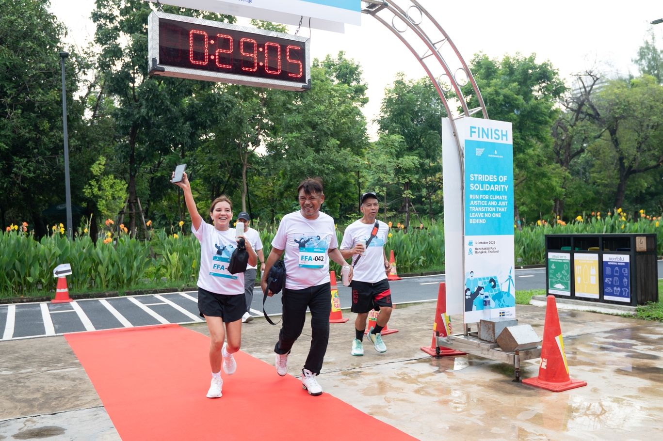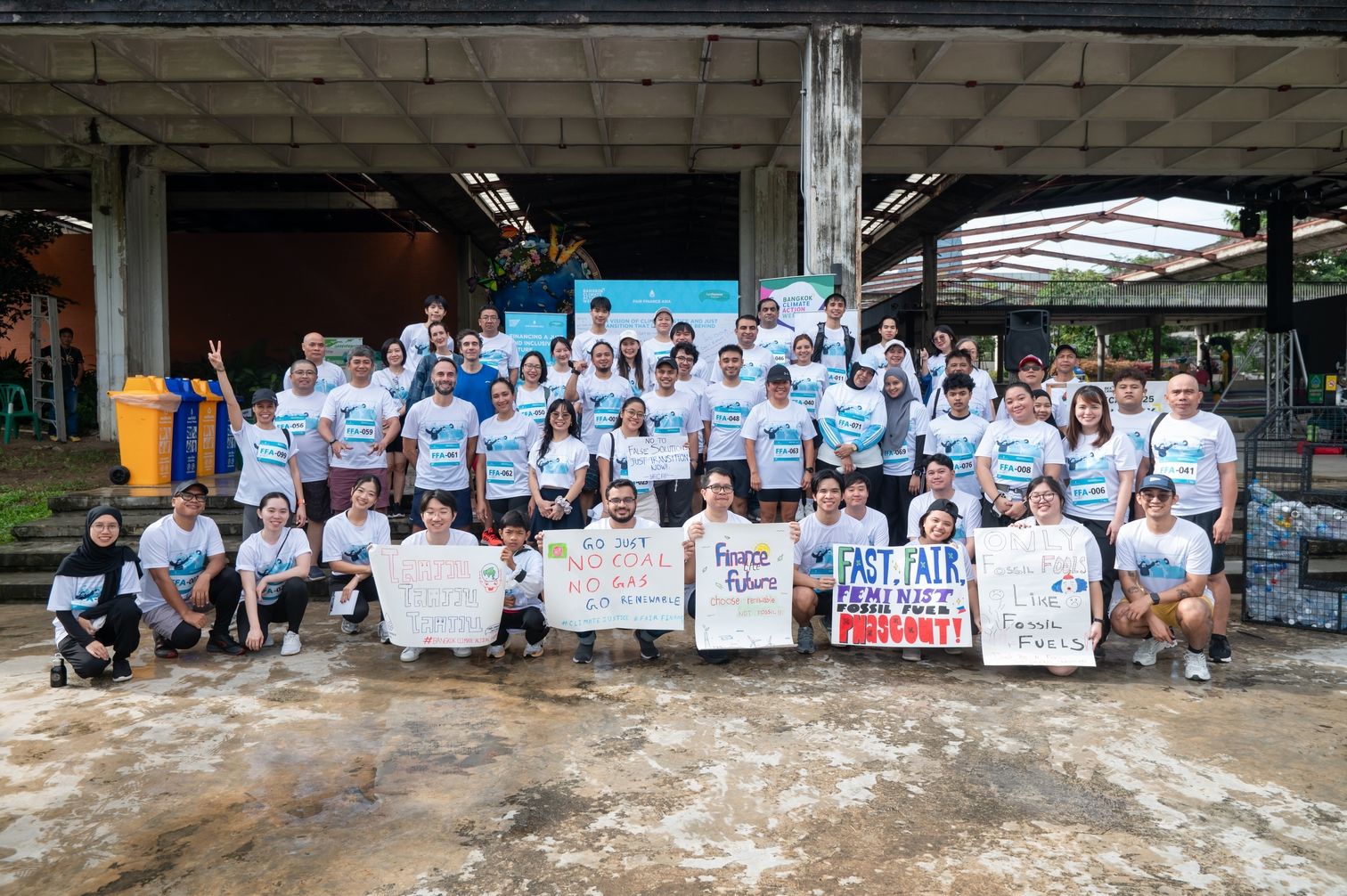 วันสุดท้ายของการจัดกิจกรรมปิดฉากลงด้วยการวิ่ง “ก้าวแห่งความเป็นน้ำหนึ่งใจเดียว: วิ่งเพื่อความยุติธรรมด้านสภาพภูมิอากาศและการเปลี่ยนผ่านพลังงานที่ไม่ทิ้งใครไว้ข้างหลัง” ณ สวนเบญจกิติ กรุงเทพฯ โดยมีผู้เข้าร่วมจากเครือข่าย FFA ผู้เข้าร่วมงาน BKKCAW และประชาชนทั่วไป รวมแล้ว 70 คน ร่วมกันแสดงจุดยืนสนับสนุนปฏิบัติการด้านสภาพภูมิอากาศ ซึ่งกิจกรรมดังกล่าวไม่เพียงแต่ส่งเสริมการออกกำลังกายและความเป็นน้ำหนึ่งใจเดียวกันเท่านั้น แต่ยังสร้างความตระหนักรู้ให้สาธารณชนเห็นถึงความจำเป็นเร่งด่วนของการจัดหาเงินทุนเพื่อรองรับการเปลี่ยนผ่านพลังงานที่ยุติธรรมในเอเชีย