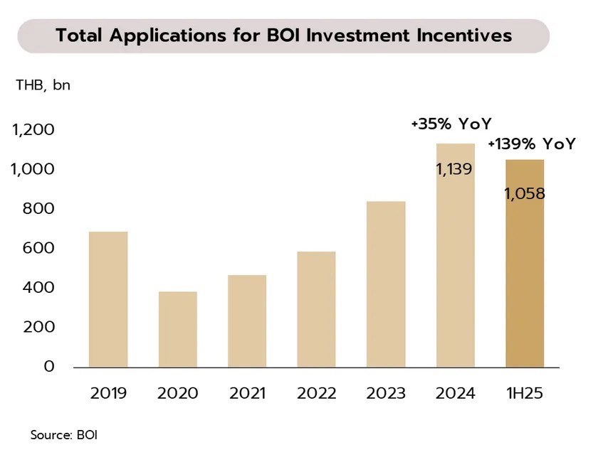 การเร่งรัดการลงทุนของ BOI ผ่านกลไกดังกล่าว คาดว่าจะช่วยลดขั้นตอนและระยะเวลาในกระบวนการอนุมัติและขออนุญาตต่างๆ เพิ่มความคล่องตัวในการดำเนินงาน ตลอดจนแก้ไขอุปสรรคทั้งในระดับนโยบายและปฏิบัติ จุดมุ่งหมายเพื่อสนับสนุนให้การลงทุนภาคเอกชนเติบโตและมีบทบาทมากขึ้นในการขับเคลื่อนเศรษฐกิจไทยในระยะข้างหน้าได้มากขึ้น โดยข้อมูลล่าสุดพบว่ามูลค่าการขอรับส่งเสริมการลงทุนในช่วงครึ่งแรกของปี 2568 สูงสุดเป็นประวัติการณ์อยู่ที่ 1.05 ล้านล้านบาท เพิ่มขึ้นสูงถึง 139% YoY นำโดยอุตสาหกรรมดิจิทัล อิเล็กทรอนิกส์ และยานยนต์สมัยใหม่ ส่วนการลงทุนโดยตรงจากต่างประเทศ (FDI) ที่ขอรับส่งเสริมลงทุนฯ มีมูลค่า 7.38 แสนล้านบาท ขยายตัว 132% นำโดยสิงคโปร์ ฮ่องกง และจีน