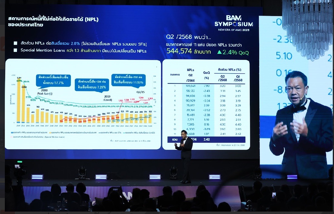 BAM เปิดฉากเวทีสัมมนาใหญ่แห่งปี BAM SYMPOSIUM : New Era of AMC 2025 ครั้งที่ 1 อย่างเป็นทางการ เมื่อวันที่ 28 ตุลาคม 2568 ณ ห้องนภาลัย แกรนด์ บอลรูม โรงแรมดุสิตธานี กรุงเทพฯ โดยได้รับเกียรติจาก นายวิทัย รัตนากร ผู้ว่าการธนาคารแห่งประเทศไทย เป็นประธานในพิธีเปิดงาน พร้อมกล่าวปาฐกถาพิเศษถึงบทบาท และความสำคัญของภาคการเงินต่อการฟื้นฟูเศรษฐกิจไทย ท่ามกลางผู้เข้าร่วมงานทั้งจากภาครัฐ เอกชน นักลงทุน นักวิชาการ และผู้ประกอบการในวงการบริหารสินทรัพย์ทั่วประเทศ