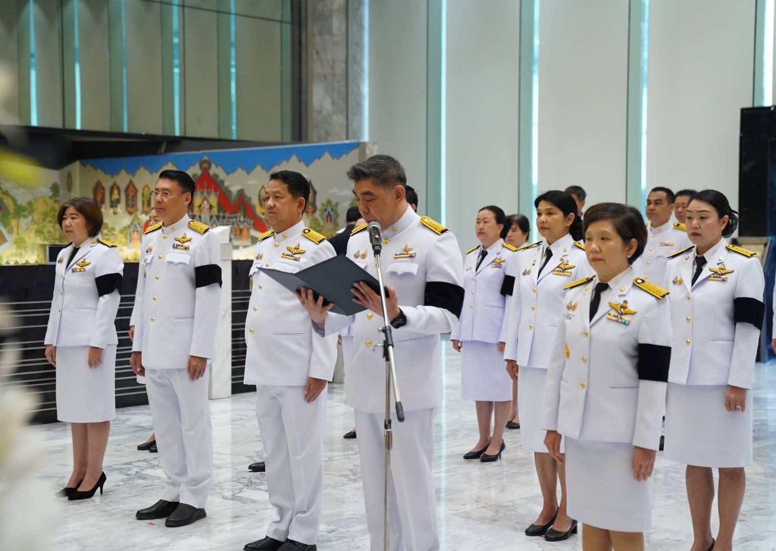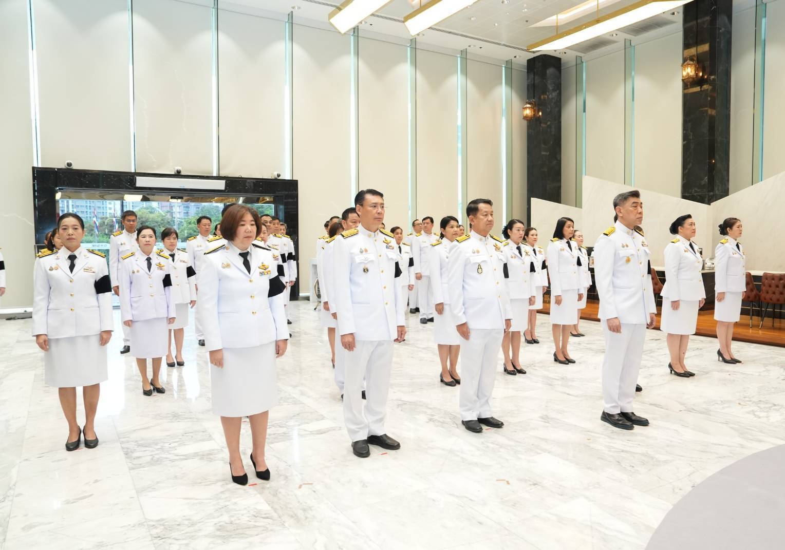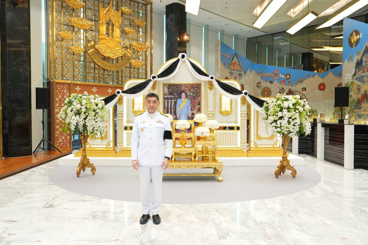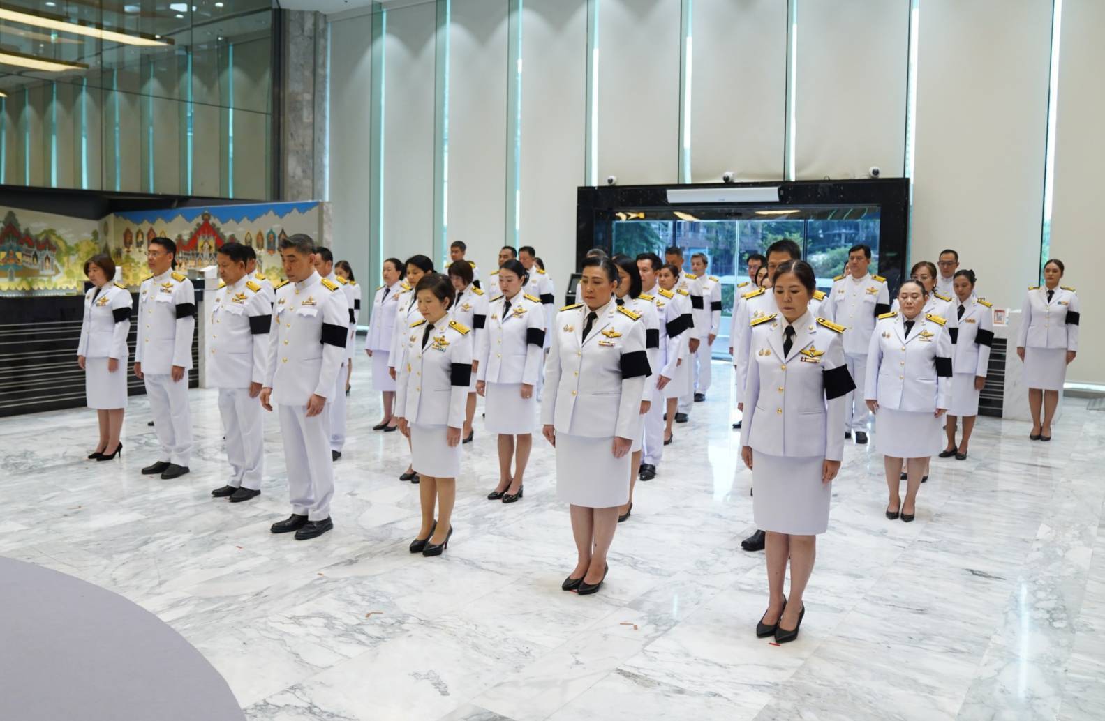 นายกมลภพ วีระพละ กรรมการผู้จัดการ ธนาคารอาคารสงเคราะห์ (ธอส.) นำคณะผู้บริหาร และพนักงานธนาคาร ร่วมพิธีแสดงความอาลัยถวายแด่สมเด็จพระนางเจ้าสิริกิติ์ พระบรมราชินีนาถ พระบรมราชชนนีพันปีหลวง พร้อมยืนสงบนิ่งและลงนามถวายความอาลัย เพื่อแสดงความจงรักภักดีและน้อมสำนึกในพระมหากรุณาธิคุณเป็นล้นพ้นอันหาที่สุดมิได้ ณ Banking Hall ธนาคารอาคารสงเคราะห์ สำนักงานใหญ่ เมื่อวันที่ 29 ตุลาคม 2568