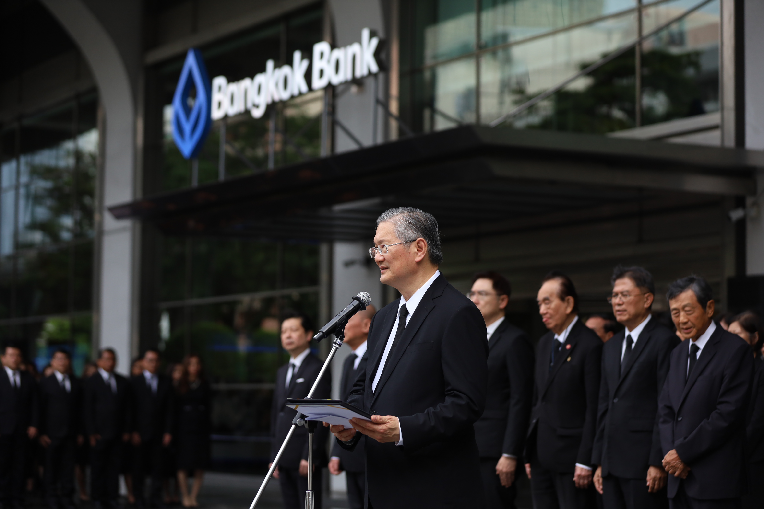 วันที่ 30 ต.ค.2568 ซึ่งเป็นวันครบสัตตมวาร (7 วัน) นายสิงห์ ตังทัตสวัสดิ์ ประธานกรรมการบริหาร นายชาติศิริ โสภณพนิช กรรมการผู้จัดการใหญ่ พร้อมด้วยคณะกรรมการธนาคาร ผู้บริหาร และพนักงานธนาคารกรุงเทพ จำกัด (มหาชน) ร่วมในพิธีแสดงความอาลัยต่อหน้าพระฉายาลักษณ์ สมเด็จพระนางเจ้าสิริกิติ์ พระบรมราชินีนาถ พระบรมราชชนนีพันปีหลวง โดยมีตัวแทนพนักงานอ่านบทกวี ‘ฝากฟ้าดิน’ แสดงความอาลัย ประพันธ์โดย นายเนาวรัตน์ พงษ์ไพบูลย์ ศิลปินแห่งชาติ ที่ปรึกษาศูนย์สังคีตศิลป์ ฝ่ายการประชาสัมพันธ์ จากนั้น กรรมการผู้จัดการใหญ่ ได้กล่าวนำแสดงความอาลัย และนำยืนสงบนิ่งเป็นเวลา 93 วินาที ณ ลานด้านหน้าอาคาร ธนาคารกรุงเทพสำนักงานใหญ่ ถนนสีลม