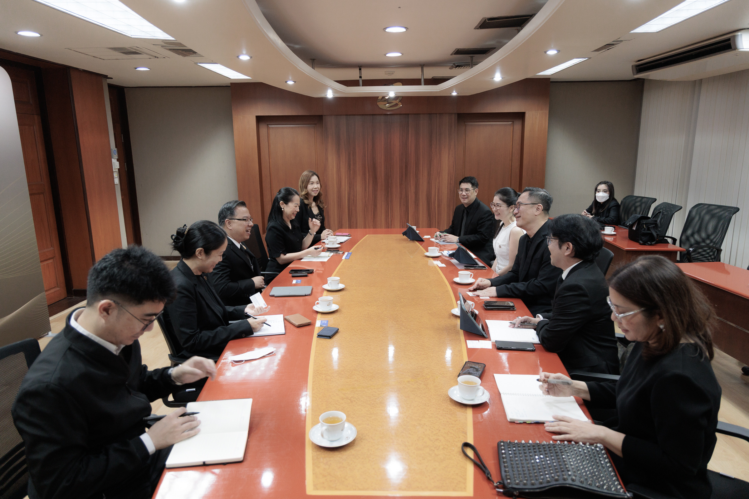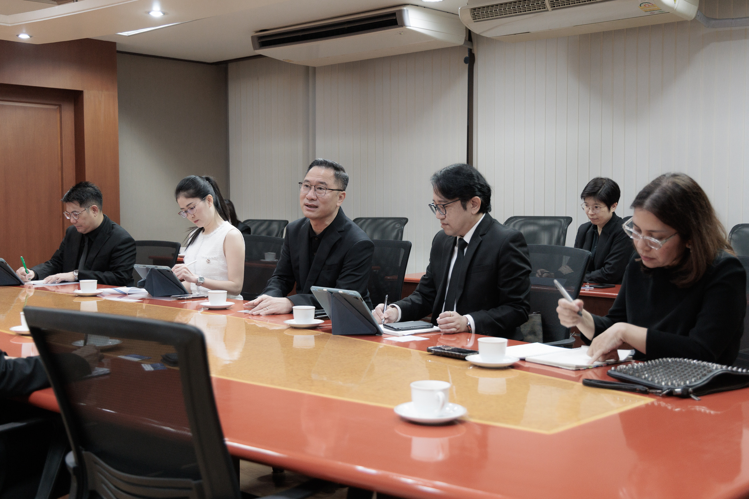 นายชลัช รัตนบุญนิธิ กรรมการผู้จัดการ ธนาคารเพื่อการส่งออกและนำเข้าแห่งประเทศไทย (EXIM BANK) พร้อมด้วยผู้บริหาร EXIM BANK พบปะนายนฤตม์ เทอดสถีรศักดิ์ เลขาธิการสำนักงานคณะกรรมการส่งเสริมการลงทุน (BOI) เพื่อหารือแนวทางความร่วมมือในการยกระดับมาตรฐานการผลิตของประเทศสู่การผลิตขั้นสูง (Advanced Manufacturing) ตามแนวนโยบายของกระทรวงการคลัง ที่มุ่งผลักดันให้ภาคอุตสาหกรรมไทยก้าวสู่เศรษฐกิจฐานนวัตกรรม ซึ่งการหารือครั้งนี้มีเป้าหมายเพื่อสนับสนุนการปรับเปลี่ยนกระบวนการผลิตของผู้ประกอบการรายใหญ่และผู้ประกอบการในห่วงโซ่อุปทาน (Supply Chain) ให้สามารถเข้าถึงเทคโนโลยีสมัยใหม่ เช่น ระบบอัตโนมัติ หุ่นยนต์ ปัญญาประดิษฐ์ และเทคโนโลยีดิจิทัลในกระบวนการผลิต ต่อยอดไปสู่การสร้าง Ecosystem ของอุตสาหกรรมสมัยใหม่อย่างยั่งยืนในระยะยาวต่อไป ณ BOI เมื่อวันที่ 31 ตุลาคม 2568
