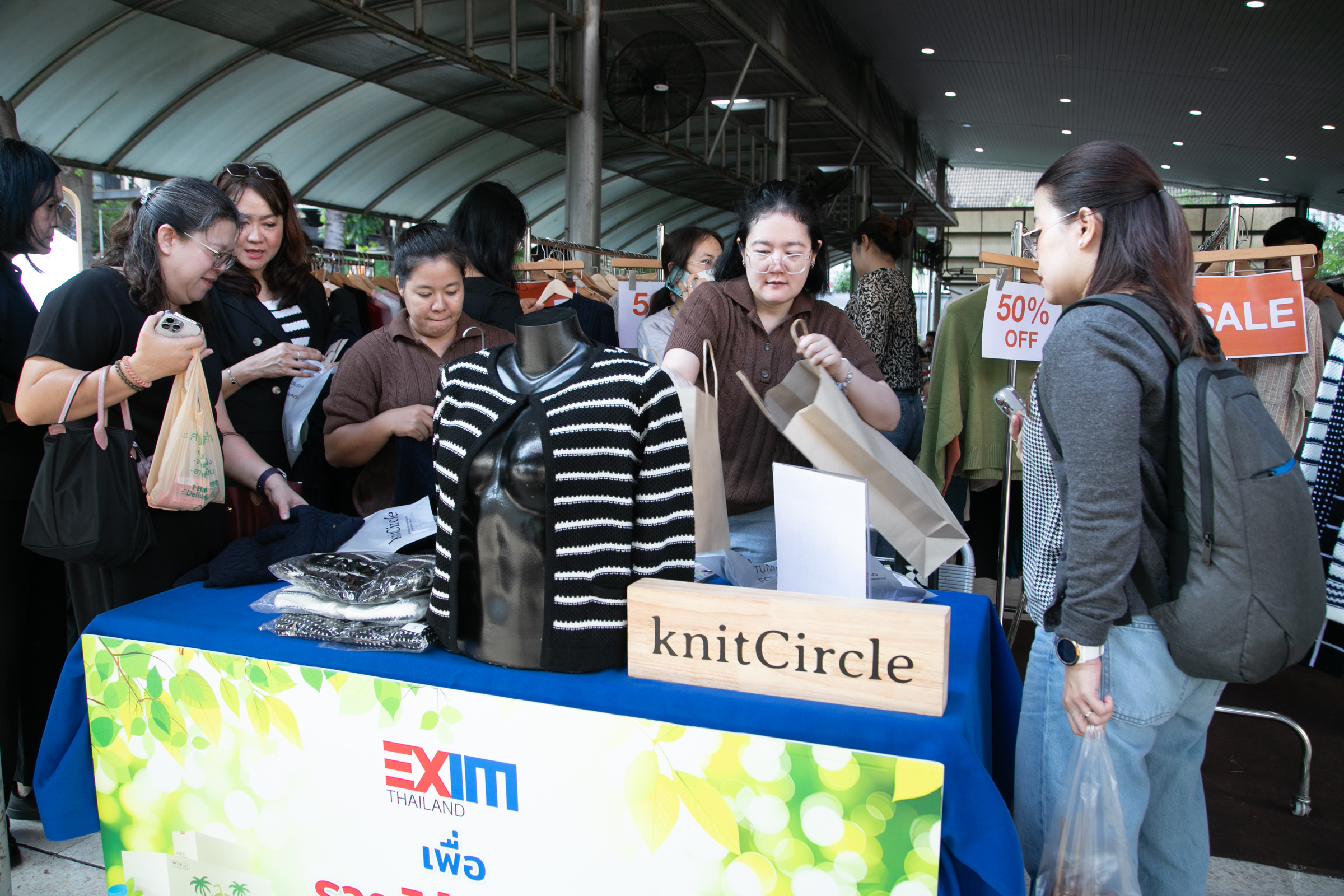 นางสาวดรัสวันต์ ชูวงษ์ ผู้ช่วยกรรมการผู้จัดการ ธนาคารเพื่อการส่งออกและนำเข้าแห่งประเทศไทย (EXIM BANK) พร้อมผู้บริหารและพนักงาน EXIM BANK ร่วมอุดหนุนสินค้าจากบริษัท ฟูลไทยนิตติ้งแฟคตอรี่ จำกัด ผู้ผลิตและจำหน่ายเสื้อไหมพรมคุณภาพส่งออกไปยังทวีปยุโรปมานานกว่า 36 ปี รวมถึงแบรนด์ “knitCircle” และ “Cuppa.Knit” ที่ใช้เส้นด้ายธรรมชาติ ใส่ใจสิ่งแวดล้อม การออกแบบมีความทันสมัย เหมาะกับไลฟ์สไตล์คนรุ่นใหม่และกลุ่มวัยทำงานที่ใส่ใจแฟชั่นอย่างยั่งยืน บริษัทเป็นลูกค้าของ EXIM BANK มาอย่างยาวนาน และได้รับการจัดสรรพื้นที่ให้นำสินค้าคุณภาพส่งออกมาจำหน่ายโดยไม่มีค่าใช้จ่าย ณ EXIM BANK สำนักงานใหญ่ เมื่อวันที่ 31 ตุลาคม 2568