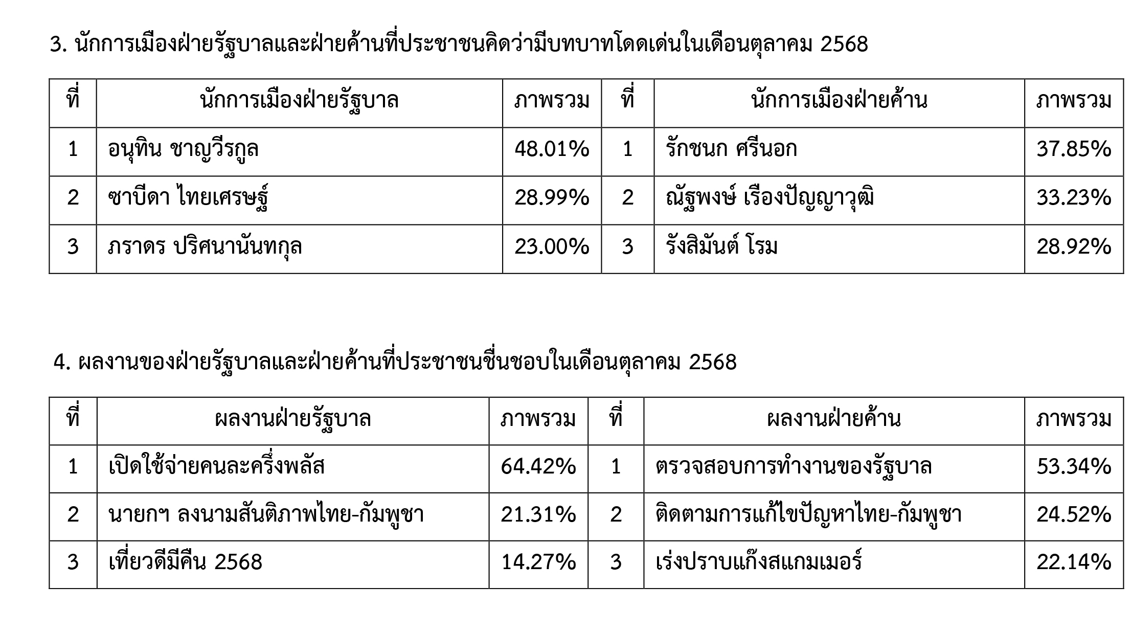 สรุปผลการสำรวจ : “ดัชนีการเมืองไทย เดือนตุลาคม 2568”