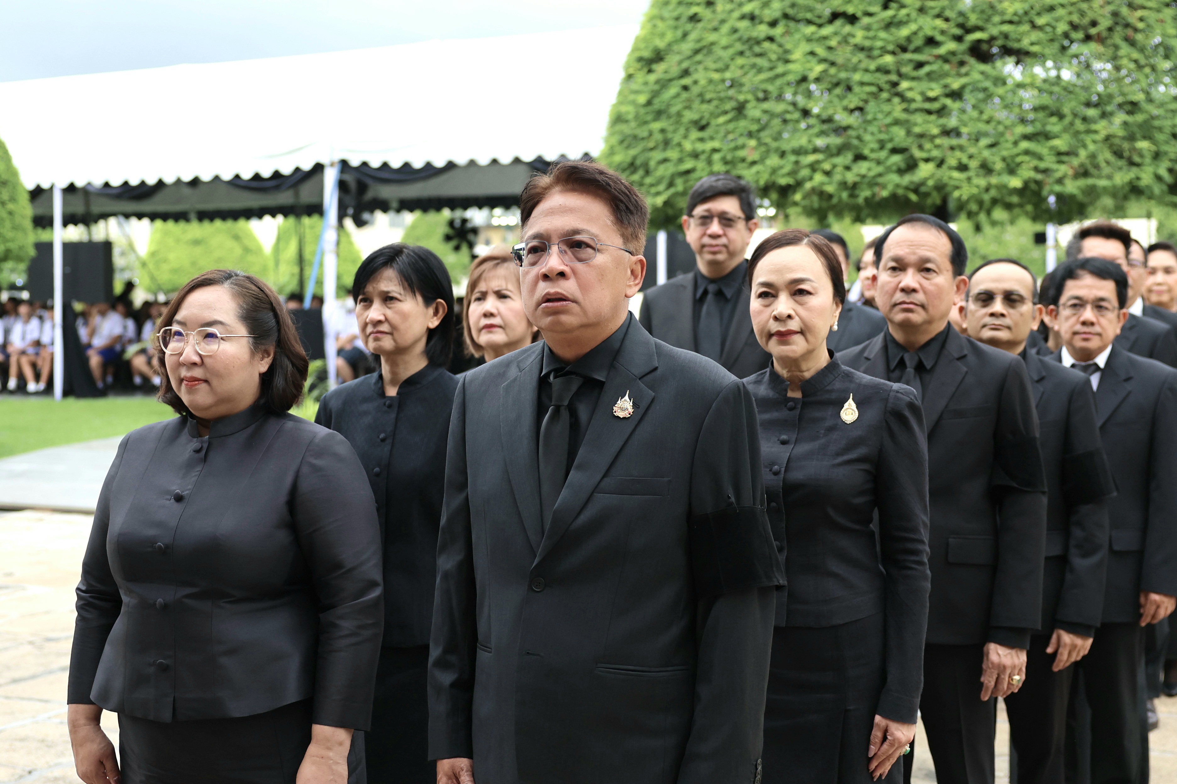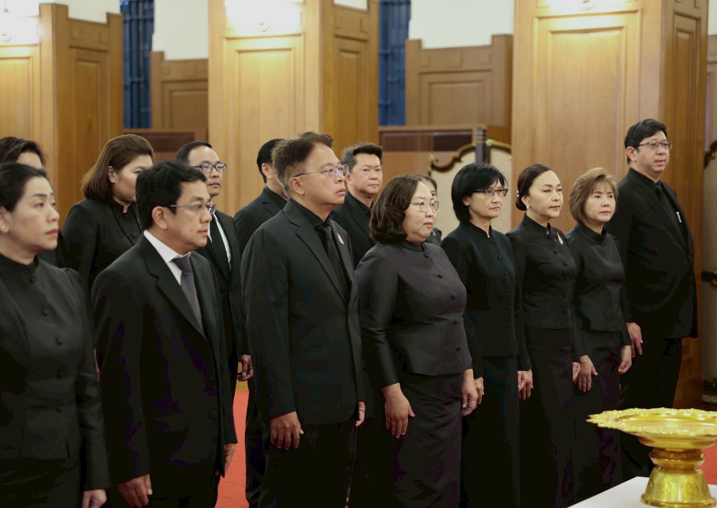 นายธีรัชย์ อัตนวานิช ประธานกรรมการธนาคารออมสิน และนางลภาวรรณ จันทร์กระจ่าง รองผู้อำนวยการธนาคารออมสิน รักษาการแทนผู้อำนวยการธนาคารออมสิน พร้อมด้วยคณะผู้บริหาร ถวายพวงมาลัย พร้อมลงนามถวายความอาลัย แด่สมเด็จพระนางเจ้าสิริกิติ์ พระบรมราชินีนาถ พระบรมราชชนนีพันปีหลวง เพื่อแสดงความจงรักภักดีและสำนึกในพระมหากรุณาธิคุณอันหาที่สุดมิได้ ที่ทรงปฏิบัติพระราชกรณียกิจนานัปการ เพื่อประโยชน์สุขของพสกนิกรชาวไทย ณ ศาลาสหทัยสมาคม ในพระบรมมหาราชวัง เมื่อวันที่ 4 พฤศจิกายน 2568