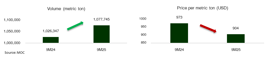 • ราคาพลังงานปรับลดลงตามราคาในตลาดโลกและมาตรการลดภาระค่าครองชีพของรัฐบาล โดยมีส่วนทำให้เงินเฟ้อลดลง (contribution to inflation) -1.37%YoY โดยตั้งแต่วันที่ 4 ต.ค. 2568 รัฐบาลประกาศปรับลดราคาน้ำมันเชื้อเพลิงในประเทศลง 50 สตางค์ต่อลิตร ส่งผลให้ราคาน้ำมันดีเซลปรับลดลง - 4.9%YoY และแก๊สโซฮอลล์ปรับลดลง -11.1%YoY