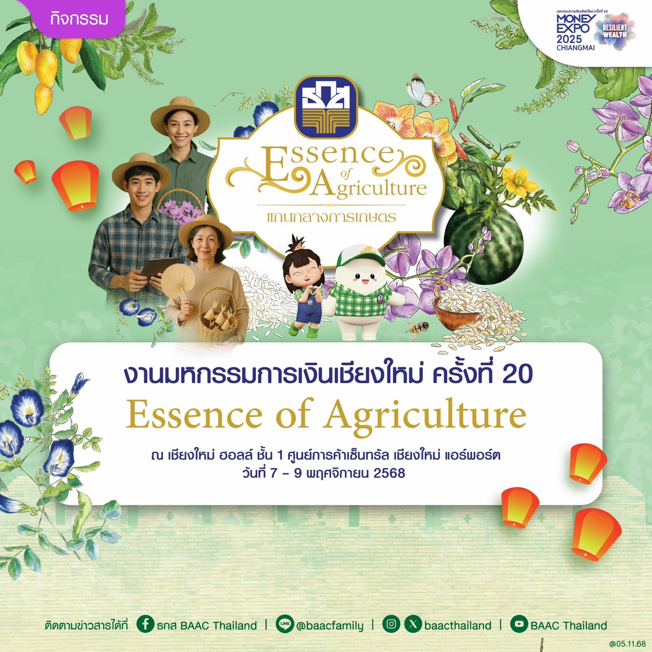 นายไพศาล หงษ์ทอง รองผู้จัดการธนาคารเพื่อการเกษตรและสหกรณ์การเกษตร (ธ.ก.ส.) เปิดเผยว่า ธ.ก.ส. ขนโปรโมชันพิเศษพร้อมบริการการเงินแบบครบวงจรพบปะพี่น้องภาคเหนือเข้าร่วมงาน Money Expo เชียงใหม่ ครั้งที่ 20 อาทิ ผลิตภัณฑ์เงินฝาก – เงินฝากทองชมพูนุช ฝากเงินขั้นต่ำ 100,000 บาท รวมสูงสุดไม่เกิน 100 ล้านบาทต่อราย จ่ายดอกเบี้ยเงินฝากล่วงหน้า ณ วันที่ฝากเงิน ร้อยละ 1.40 ต่อปี ระยะเวลาฝาก 7 เดือน สำหรับบุคคลธรรมดาไม่เสียภาษีดอกเบี้ยเงินฝาก เปิดรับฝากแล้วตั้งแต่วันนี้จนถึงวันที่ 4 ธันวาคม 2568 พิเศษ เมื่อฝากตั้งแต่ 500,000 บาท แต่ไม่เกิน 1,000,000 บาท รับสิทธิ์จุ่ม Art Toy ชุดมังแมว จำนวน 1 จุ่ม (จำกัด 1 คนต่อสิทธิ์) และเมื่อฝากตั้งแต่ 1,000,000 บาทขึ้นไป รับ Art Toy ชุดมังแมว ครบเซต 4 ตัว (จำกัด 1 คน/สิทธิ์) เงินฝากแก้วมรกต ฝากเริ่มต้นเพียง 2,000 บาท รับผลตอบแทนเป็นดอกเบี้ยเงินฝาก แถมสิทธิประโยชน์ความคุ้มครองอุบัติเหตุสูงสุดถึง 25 เท่าของยอดเงินฝากคงเหลือ วงเงินคุ้มครองสูงสุดไม่เกิน 10 ล้านบาท เมื่อฝากตั้งแต่ 20,000 บาทขึ้นไป และคงยอดไว้ 3 เดือน พร้อมสมัครบัตรเดบิตแบบมีประกัน (พลอยไพฑูรย์ หรือบุษย์น้ำทอง) รับเพิ่มสลากออมทรัพย์ ธ.ก.ส. ชุดมังกรหยก มูลค่า 100 บาท และด้านสลากออมทรัพย์ พบกับสลากออมทรัพย์ ธ.ก.ส. ชุดขุนแผนมรกต หน่วยละ 2,000 บาท ลุ้นโชคใหญ่ทุกเดือน มูลค่า 40 ล้านบาท และรางวัลอื่น ๆ รวมมูลค่ากว่า 72 ล้านบาทต่อเดือน ถึง 24 ครั้ง เมื่อฝากครบ 2 ปี ได้รับดอกเบี้ยทันทีหน่วยละ 19 บาท หรือคิดเป็น 0.475% และฝาก 1,000 หน่วยขึ้นไป การันตีถูกรางวัลทุกงวด สลากออมทรัพย์ ธ.ก.ส. ชุดมังกรหยก หน่วยละ 100 บาทที่ให้ทั้งผลตอบแทนและสิทธิ์ลุ้นรางวัลใหญ่ทุกเดือน เมื่อฝากตั้งแต่ 1,000,000 บาทขึ้นไป รับสิทธิ์จุ่ม Art Toy ชุด AGRI ANIMAL (ทุย นกเอี้ยง ผึ้ง มด กบ ลิง ด้วงกว่าง และผีเสื้อ) จำนวน 1 จุ่ม (จำกัด 1 คน/สิทธิ์) ซึ่งเปิดตัว Art toy ตัวใหม่ “ผีเสื้อ” งานนี้เป็นครั้งแรก หรือเมื่อฝากสลากออมทรัพย์ ธ.ก.ส. ชุดมังกรหยก หน่วยละ 100 บาท ชุดถุงเงิน หน่วยละ 100 บาท ชุดขวัญถุง หน่วยละ 20 บาท หรือสลากดิจิทัล ธ.ก.ส. หน่วยละ 50 บาท ตั้งแต่ 100,000 บาท แต่ไม่เกิน 590,000 บาท รับกระปุกออมทรัพย์ คุณ ME โชค รุ่นรวยเหลือแจก หรือเมื่อฝากตั้งแต่ 590,000 บาทขึ้นไป รับเลยกระเป๋าอเนกประสงค์ รุ่น Work Hard, Play Harder