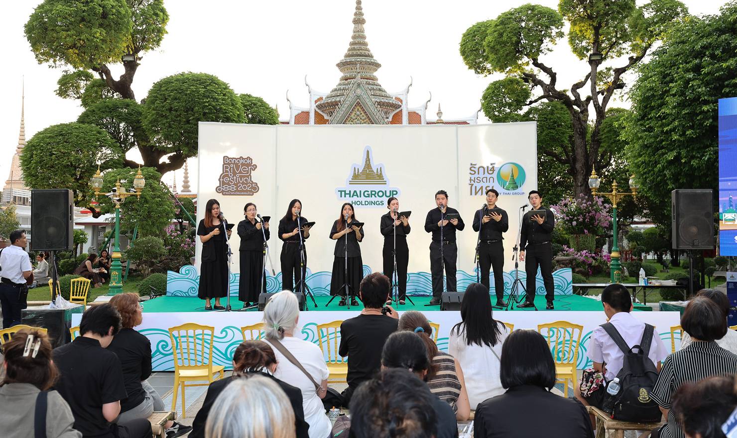 ภายในงาน ได้รับเกียรติจาก นายบวรศักดิ์ อุวรรณโณ (กลางภาพ) รองนายกรัฐมนตรี เยี่ยมชมกิจกรรม “รักษ์มรดกไทย BY THAI GROUP” ณ ลานอรุณ พร้อมด้วย นางสาวซาบีดา ไทยเศรษฐ์ (คนที่ 7 จากซ้าย) รัฐมนตรีว่าการกระทรวงวัฒนธรรม นายสุรพล เศวตเศรนี (คนที่ 5 จากขวา) ประธานการจัดงาน River Festival 2025 สายน้ำแห่งวัฒนธรรมไทย และผู้บริหารกระทรวงวัฒนธรรม ร่วมถ่ายภาพ โดยมี นายโชติพัฒน์ พีชานนท์(คนที่ 6 จากขวา) ประธานกรรมการบริหาร และนางอาทินันท์ พีชานนท์ (คนที่ 7 จากขวา) รองประธานกรรมการบริหาร บริษัท ไทยกรุ๊ป โฮลดิ้งส์ จำกัด (มหาชน) ให้การต้อนรับ เมื่อวันที่ 5 พฤศจิกายนที่ผ่านมา