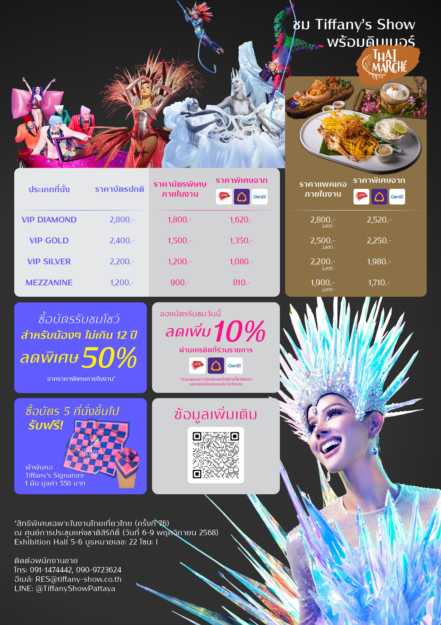 โอกาสทอง! ทิฟฟานี่โชว์ พัทยา ขอเชิญชวนทุกท่านมาสัมผัสความอลังการระดับโลกในราคาพิเศษสุดๆ ในงาน “ไทยเที่ยวไทย” ครั้งที่ 76! พบกันที่บูธ I 22 (โซน I บริเวณหัวมุม) ณ ศูนย์การประชุมแห่งชาติสิริกิติ์ ระหว่างวันที่ 6-9 พฤศจิกายน 2568