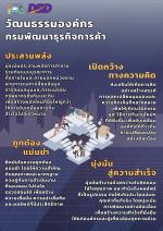 3) เปิดกว้างทางความคิด สร้างบรรยากาศการทำงานที่ส่งเสริมความคิดสร้างสรรค์ เปิดพื้นที่ให้แลกเปลี่ยนมุมมองจากบุคลากรที่หลากหลายเพื่อก่อให้เกิดนวัตกรรมและปรับวิธีการทำงานรูปแบบใหม่ที่ตอบโจทย์การให้บริการในยุคดิจิทัล มุ่งสู่องค์กรแห่งความร่วมมือและนวัตกรรม และ 4) มุ่งมั่นสู่ความสำเร็จ ส่งเสริมบุคลากรให้ตั้งมั่นทำงานด้วยความรับผิดชอบ ใส่ใจคุณภาพ และมุ่งผลสัมฤทธิ์ที่เป็นรูปธรรม เพื่อยกระดับการบริการและความสำเร็จขององค์กรอย่างยั่งยืน