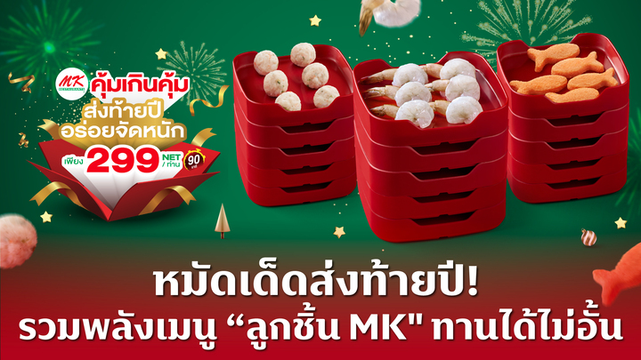 MK คุ้มเกินคุ้ม 299 บาท รวมพลังเมนูสุดฮิตที่ลูกค้าเรียกร้องมากที่สุด ทั้งลูกชิ้น MK และ MK แซลมอน จัดเต็มให้ทานได้ไม่อั้นแบบไม่มีกั๊ก เพื่อมอบความคุ้มค่าขั้นสุดในทุกมื้อ สะท้อนอีกหนึ่งกลยุทธ์ของแบรนด์ที่พร้อมเสิร์ฟเซอร์ไพรส์ใหม่ ๆ ให้ลูกค้าได้ว้าวตลอดทุกช่วง จนกลายเป็นกระแสร้อนแรงบนโลกโซเชียล และดึง Traffic หน้าร้านให้หลั่งไหลเข้ามาอย่างต่อเนื่องทุกวัน