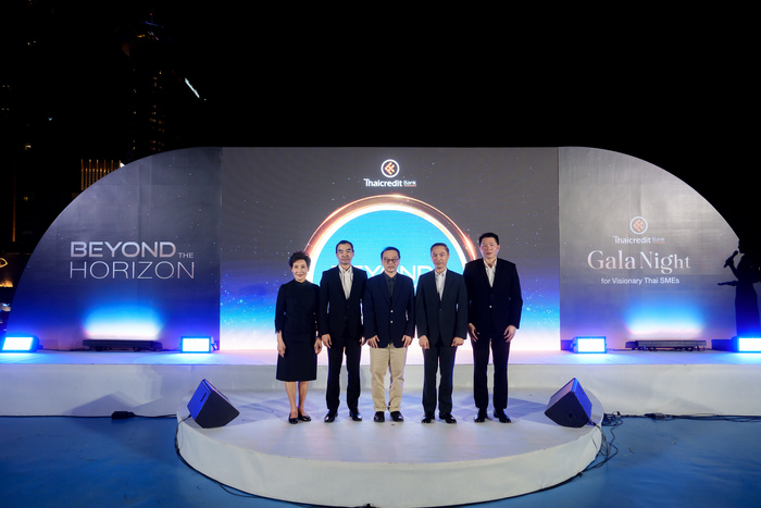 ธนาคารไทยเครดิต จำกัด (มหาชน) เนรมิตดาดฟ้าอาคารริมแม่น้ำเจ้าพระยา จัดงานเลี้ยง “Beyond the Horizon Gala Night for Visionary Thai SMEs” ในค่ำคืนสุดพิเศษ เพื่อขอบคุณลูกค้าที่เชื่อมั่นและเลือกใช้บริการสินเชื่อไมโครเอสเอ็มอีและเอสเอ็มอีของธนาคารฯ ด้วยดีเสมอมา พร้อมการบรรยายพิเศษ “อนาคตเศรษฐกิจกับ SME ไทย” โดย รศ.ดร.อนุสรณ์ ธรรมใจ คณบดีคณะเศรษฐศาสตร์ และผู้อำนวยการศูนย์วิจัยเศรษฐกิจดิจิทัล การลงทุนและการค้าระหว่างประเทศ มหาวิทยาลัยหอการค้าไทย ณ ริเวอร์ ซิตี้ แบงค็อก เมื่อวันที่ 15 พฤศจิกายน 2568 โดย นายวิญญู ไชยวรรณ รองประธานกรรมการ และประธานคณะเจ้าหน้าที่บริหาร นางสาวกฤษณา อร่ามกุลชัย กรรมการ นายรอยย์ ออกุสตินัส กุนารา ประธานเจ้าหน้าที่บริหาร และนายนาธัส กฤตวรานนท์ รองกรรมการผู้จัดการ กลุ่มบริหารธุรกิจไมโครเอสเอ็มอี ธนาคารไทยเครดิต จำกัด (มหาชน) ให้การต้อนรับ