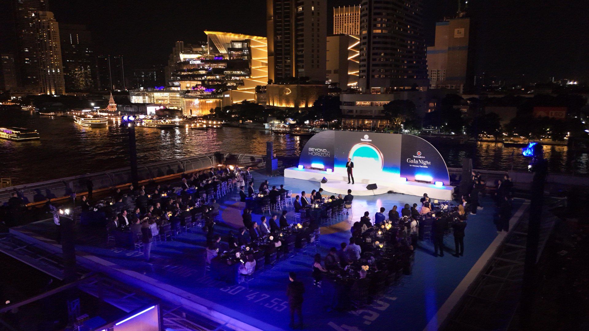 สำหรับงาน Beyond the Horizon Gala Night for Visionary Thai SMEs เป็นงานเลี้ยงเพื่อขอบคุณลูกค้าสินเชื่อไมโครเอสเอ็มอีและเอสเอ็มอีของธนาคารไทยเครดิต โดยลูกค้าทุกท่านที่เข้าร่วมงานได้สัมผัสกับความงดงามเหนือเส้นขอบฟ้ายามค่ำคืนของกรุงเทพมหานคร ในบรรยากาศที่เปี่ยมด้วยมนต์เสน่ห์ของแม่น้ำเจ้าพระยา ร่วมรับประทานอาหารมื้อค่ำสไตล์ตะวันตกจากเมนูสุดพิเศษ โดยเชฟอาร์ ธีรภัทร ตียาสุนทรานนท์ ผู้ชนะจากรายการ The Next Iron Chef Season 2