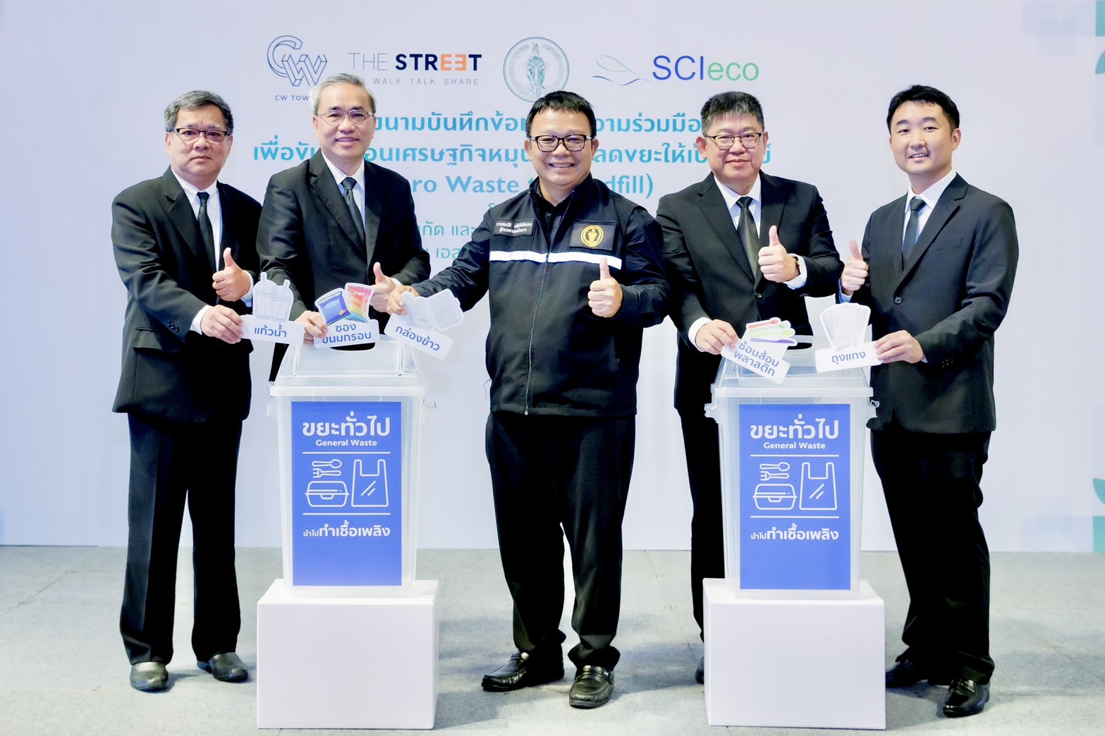 นายพงษ์ศักดิ์ นันตวรรณกุล กรรมการผู้จัดการ อาคาร ซีดับเบิ้ลยู ทาวเวอร์ และ ศูนย์การค้า เดอะ สตรีท รัชดา เปิดเผยถึงความมุ่งมั่นในการผลักดันให้อาคาร ซีดับเบิ้ลยู ทาวเวอร์ และ ศูนย์การค้า เดอะ สตรีท รัชดา เป็นอาคารรักษ์โลกเพื่อตอบรับปัญหาขยะที่เพิ่มขึ้น โดยได้เดินหน้ายกระดับการจัดการขยะอย่างเต็มกำลังด้วยความร่วมมือจากผู้เช่าที่เข้าร่วมคัดแยกขยะตั้งแต่ต้นทาง เพื่อสร้างต้นแบบในการจัดการขยะอย่างถาวร สอดคล้องกับแนวคิด GO GREEN และเป้าหมาย Zero Waste to Landfill ที่วางไว้ โดยได้ลงนามบันทึกข้อตกลง MOU กับบริษัท SCIeco ทำให้ระบบจัดการขยะมีประสิทธิภาพและสามารถต่อยอดเข้าสู่กระบวนการใช้ประโยชน์เชิงพลังงานได้จริง สอดคล้องกับแนวทางขับเคลื่อนเศรษฐกิจหมุนเวียน (Circular Economy) ที่มุ่งเน้นการหมุนเวียนทรัพยากรให้เกิดคุณค่ามากที่สุด