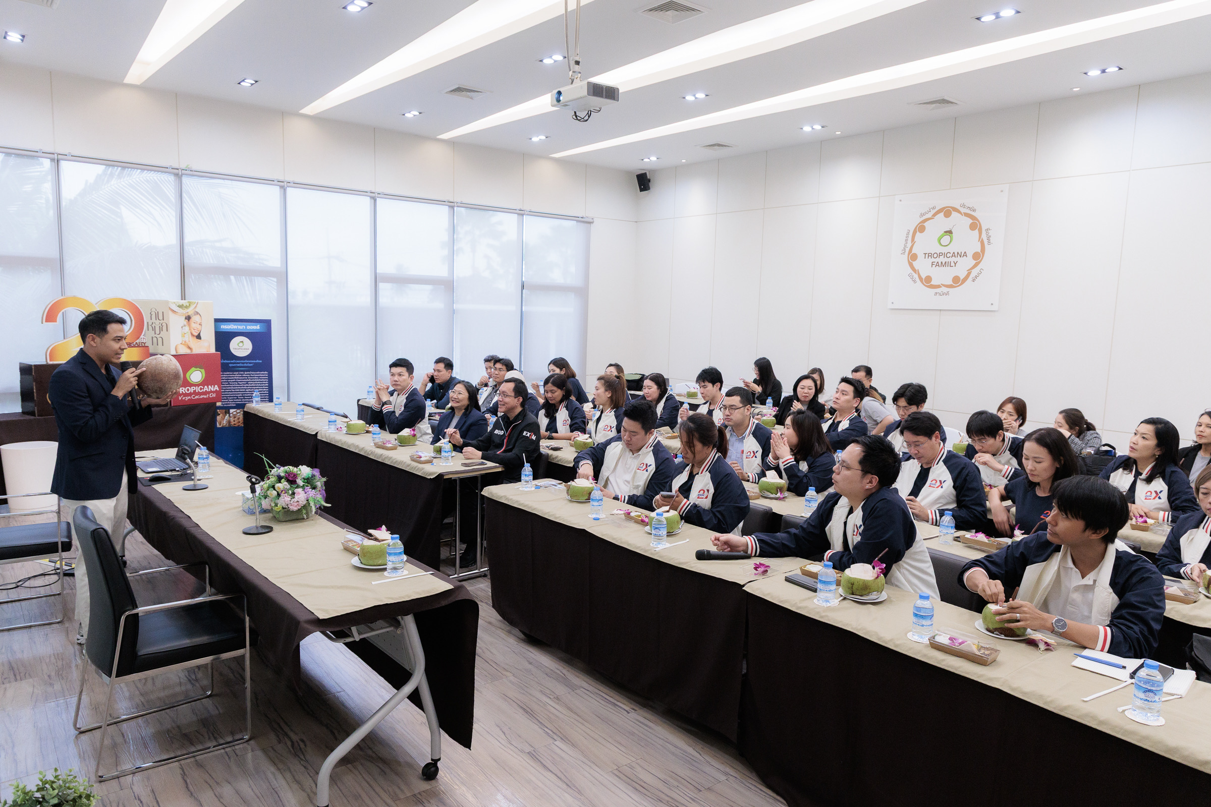 ดร.วโรทัย โกศลพิศิษฐ์กุล กรรมการ ธนาคารเพื่อการส่งออกและนำเข้าแห่งประเทศไทย (EXIM BANK) และนางสาวดรัสวันต์ ชูวงษ์ รองกรรมการผู้จัดการ EXIM BANK นำคณะผู้ประกอบธุรกิจส่งออกที่เข้าร่วมอบรมหลักสูตร EXIM 2X ศึกษาดูงานสถานประกอบการต้นแบบบริษัท ทรอปิคานา ออยล์ จำกัด ผู้ผลิตและจำหน่ายน้ำมันมะพร้าวสกัดเย็นจากมะพร้าวไทยออร์แกนิกจังหวัดสุราษฏร์ธานี นอกจากนี้ยังมีสินค้าแปรรูปเป็นผลิตภัณฑ์เครื่องสำอางชนิดต่าง ๆ ภายใต้แบรนด์ทรอปิคานา (Tropicana) ส่งออกและจำหน่ายใน 20 ประเทศทั่วโลก เพื่อแลกเปลี่ยนเรียนรู้ด้านการพัฒนาผลิตภัณฑ์จากภูมิปัญญาท้องถิ่น การขยายตลาดส่งออก และการบริหารจัดการซัพพลายเชนอย่างมีประสิทธิภาพ โดยมีนายสุรเดช นิลเอก กรรมการผู้จัดการ บริษัท ทรอปิคานา ออยล์ จำกัด ให้การต้อนรับ ณ ที่ทำการบริษัท อำเภอนครชัยศรี จังหวัดนครปฐม เมื่อวันที่ 18 พฤศจิกายน 2568