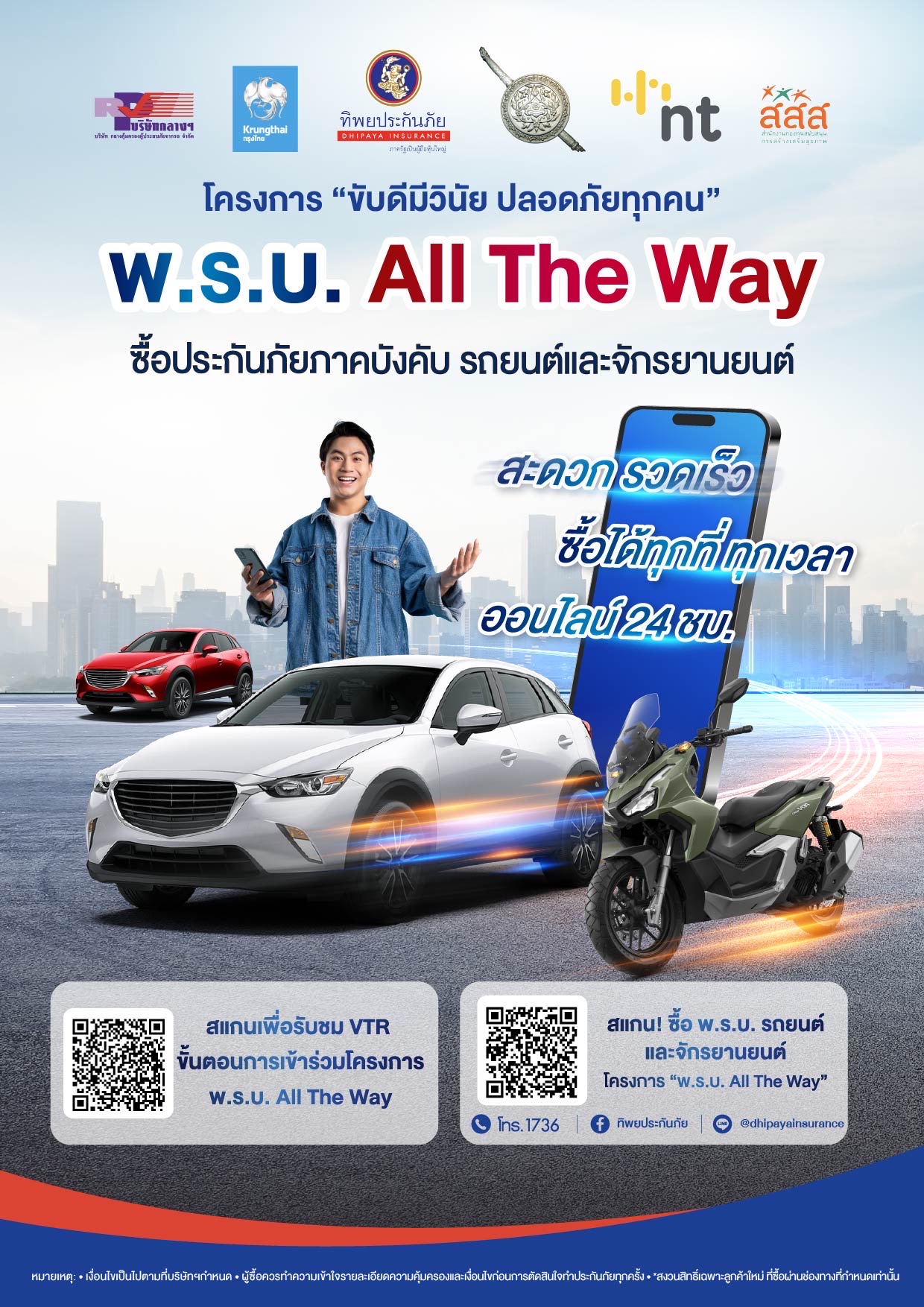 ผู้ขับขี่ที่ไม่มีใบสั่งย้อนหลัง 1 ปี สามารถซื้อประกันภัยรถยนต์ภาคสมัครใจประเภท 1 จากทิพยประกันภัย พร้อมรับส่วนลดพิเศษ10% (สำหรับลูกค้าใหม่) สามารถซื้อได้ผ่าน QR Codeบนสื่อประชาสัมพันธ์ ,
