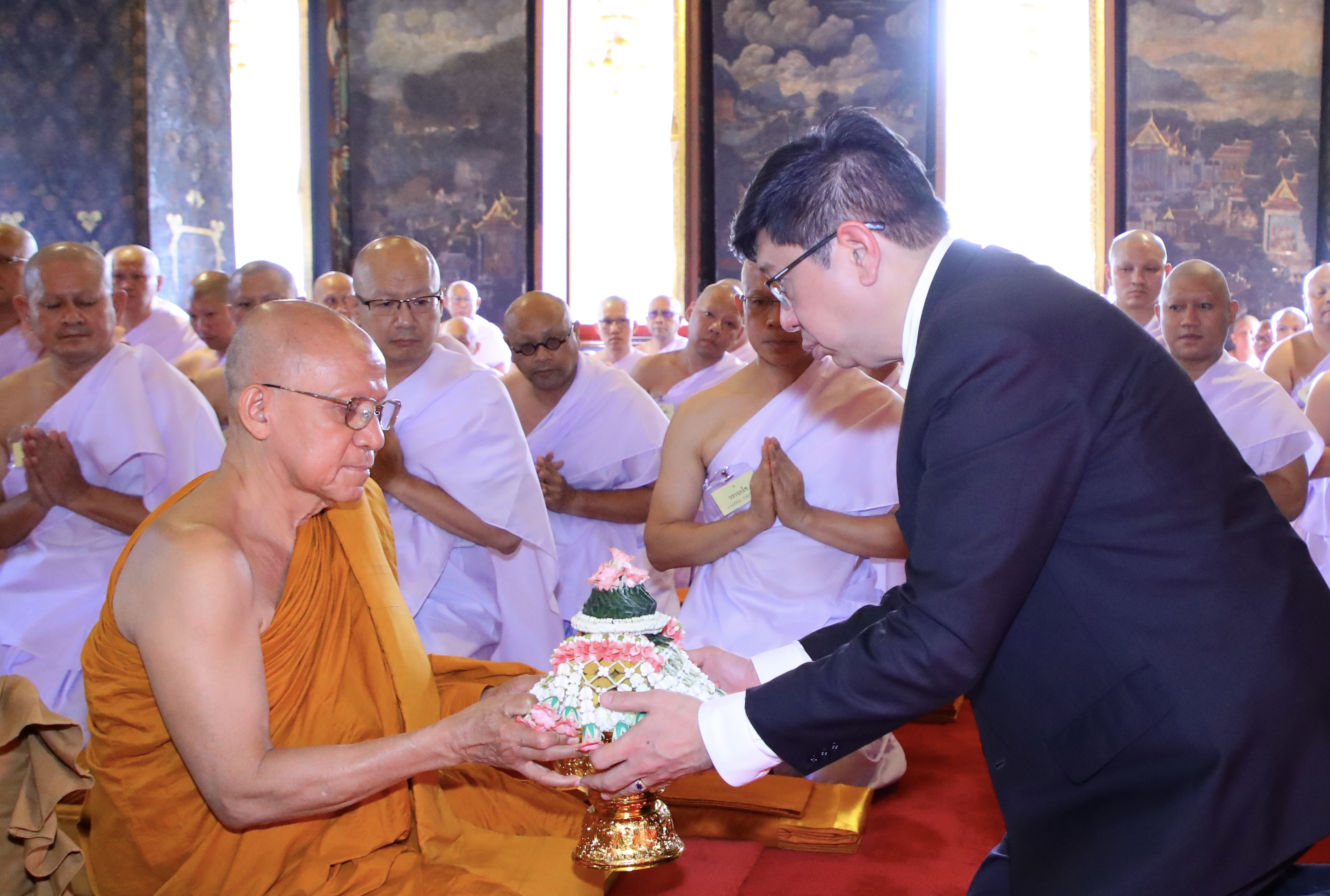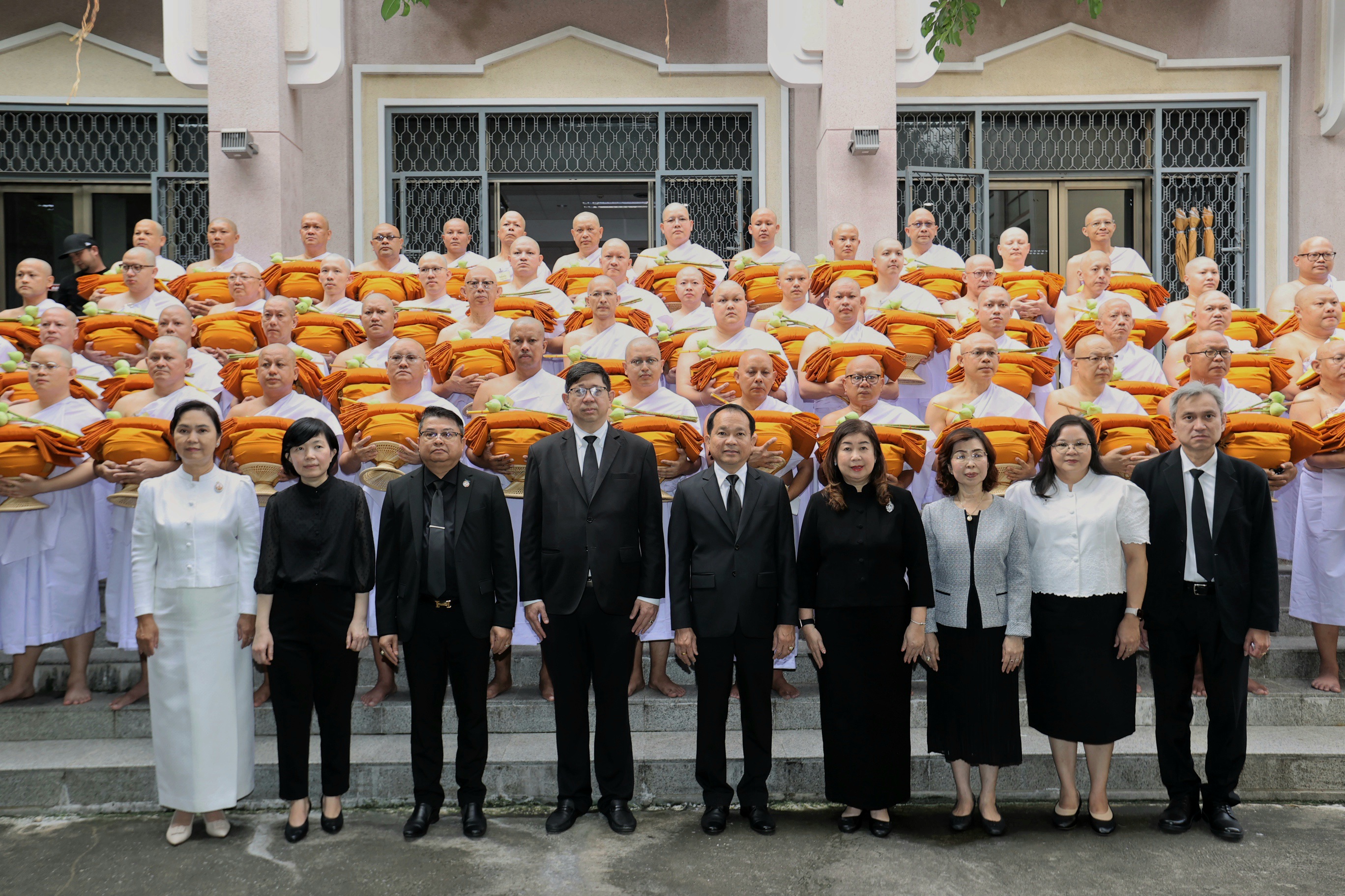 นายเสกสรร ทวีกสิกรรม และนายณัทธร โพธิแพทย์ รองผู้อำนวยการธนาคารออมสิน ในฐานะประธานฝ่ายฆราวาส พร้อมด้วยผู้บริหารและพนักงาน ร่วมพิธีบรรพชาอุปสมบทหมู่พนักงานและลูกจ้างธนาคารออมสิน จำนวน 54 รูป เพื่อถวายเป็นพระราชกุศลแด่พระบาทสมเด็จพระมงกุฎเกล้าเจ้าอยู่หัว เนื่องในโอกาสครบรอบ 100 ปี วันสวรรคต โดยมีพระพรหมวชิรรังษี เจ้าอาวาสวัดบวรนิเวศวิหาร เป็นประธานฝ่ายสงฆ์ ทั้งนี้ การบรรพชาอุปสมบทหมู่ในครั้งนี้เป็นส่วนหนึ่งของโครงการ “ออมสินน้อมรำลึก 100 ปี วันมหาธีรราชเจ้า” ซึ่งธนาคารออมสินจัดขึ้นเพื่อเฉลิมพระเกียรติพระบาทสมเด็จพระมงกุฎเกล้าเจ้าอยู่หัว อีกทั้งยังเป็นการสืบสานพระพุทธศาสนาให้คงอยู่สืบไป โดยพระภิกษุสงฆ์บวชใหม่ทั้ง 54 รูป จะศึกษาพระธรรมวินัยและปฏิบัติธรรม ณ วัดบวรนิเวศวิหาร และศูนย์ปฏิบัติธรรมวชิรญาณ 200 ปี เขตคลองสามวา กรุงเทพฯ รวมระยะเวลา 15 วัน