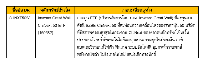 ผู้สนใจศึกษารายละเอียด DR “CHNXT5023” ได้ที่เว็บไซต์สำนักงาน ก.ล.ต. www.sec.or.th หรือบริษัทผู้ออกหลักทรัพย์คือ บริษัทหลักทรัพย์ อินโนเวสท์ เอกซ์ จำกัด www.innovestx.co.th หรือศึกษาผลิตภัณฑ์ DR เพิ่มเติมได้ที่ www.set.or.th/dr