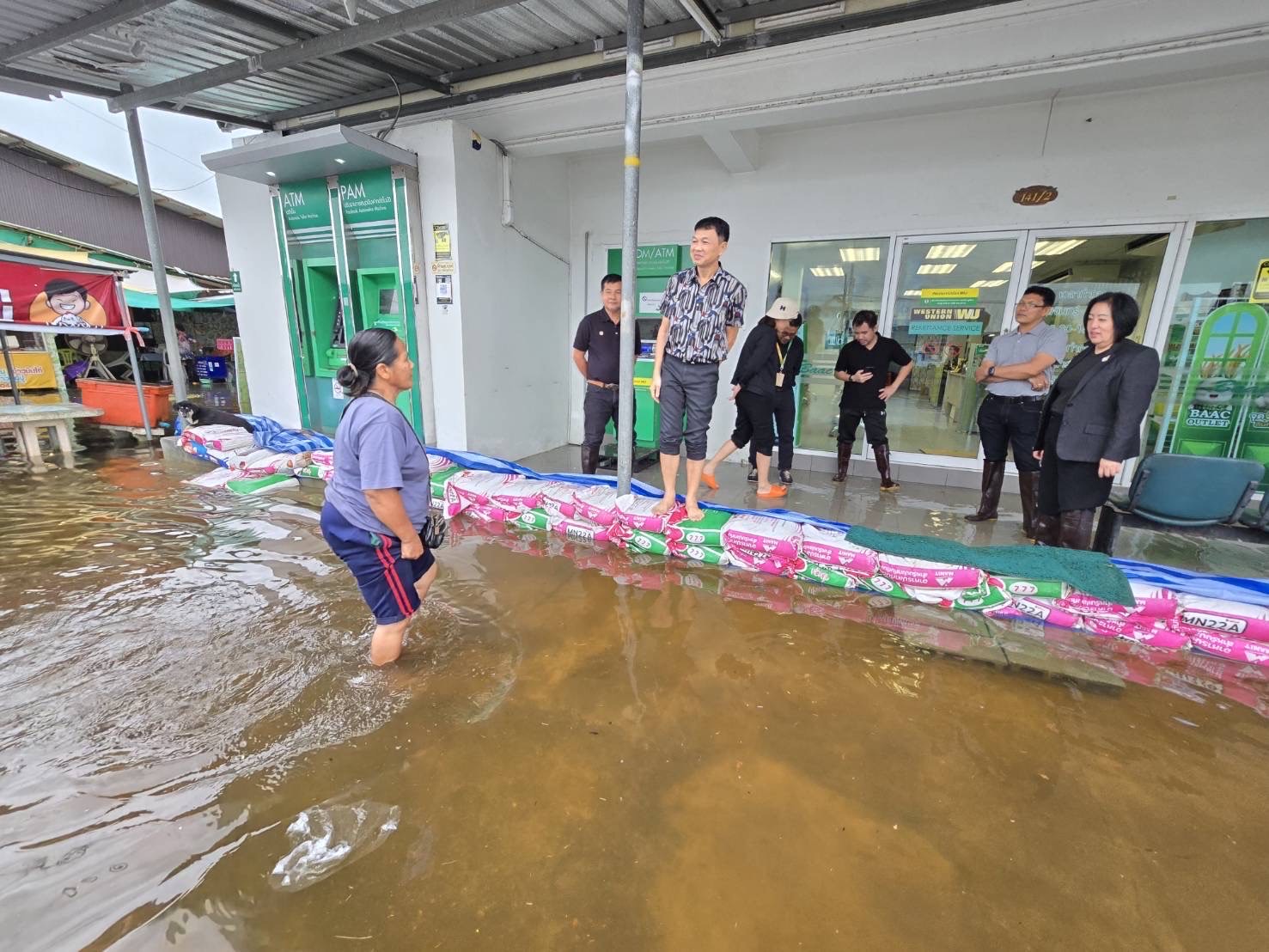 นายเอกนิติ นิติทัณฑ์ประภาศ รองนายกรัฐมนตรีและรัฐมนตรีว่าการกระทรวงการคลัง ในฐานะประธานกรรมการธนาคารเพื่อการเกษตรและสหกรณ์การเกษตร (ธ.ก.ส.) มีความห่วงใยผู้ประสบอุทกภัยในพื้นที่ภาคใต้ได้มอบนโยบายเร่งด่วน เพื่อให้ความช่วยเหลือประชาชนผู้ได้รับความเดือดร้อน โดยมอบหมายให้ ธ.ก.ส. สาขาในพื้นที่ภาคใต้ ได้แก่ จังหวัดสุราษฎร์ธานี จังหวัดกระบี่ จังหวัดสงขลา จังหวัดนครศรีธรรม ราช จังหวัดพัทลุง จังหวัดตรัง จังหวัดสตูล จังหวัดยะลา จังหวัดนราธิวาส และจังหวัดปัตตานี ออกเยี่ยมเยียนให้ความช่วยเหลือและให้กำลังใจ พร้อมจัดถุงยังชีพ ประกอบด้วย ข้าวพร้อมทานตราอุ่นอิ่มที่สามารถรับประทานได้ทันที น้ำดื่มตรา ธ.ก.ส. อาหารกระป๋อง และสิ่งของจำเป็นอื่น ๆ ส่งมอบให้แก่ประชาชนที่ได้รับความเดือดร้อนในพื้นที่ นอกจากนี้ ธนาคารยังได้เตรียมมาตรการดูแลเกษตรกรลูกค้าที่ได้รับความเดือดร้อน ทั้งที่อยู่อาศัย พื้นที่การเกษตร และผลผลิตได้รับความเสียหายจนส่งผลกระทบต่อรายได้ผ่าน 1) โครงการสินเชื่อเพื่อเป็นค่าใช้จ่ายฉุกเฉิน เพื่อเสริมสภาพคล่องเกษตรกรในด้านค่าใช้จ่ายทั่วไป เช่น ค่าอุปโภคและบริโภคที่จำเป็น อัตราดอกเบี้ย 0% นาน 6 เดือนแรก เดือนที่ 7 เป็นต้นไป คิดอัตราดอกเบี้ย MRR (ปัจจุบัน MRR เท่ากับ 6.625%) วงเงินกู้รายละไม่เกิน 50,000 บาท 2) โครงการสินเชื่อฟื้นฟูและพัฒนาคุณภาพชีวิต เพื่อเป็นค่าลงทุนในการซ่อมแซมบ้านเรือนและทรัพย์สิน ค่าซ่อมเครื่องมือและอุปกรณ์การเกษตรที่ได้รับความเสียหายจากภัยพิบัติ รวมถึงเป็นค่าลงทุนในการทำการเกษตรรอบใหม่ วงเงินรายละไม่เกิน 500,000 บาท อัตราดอกเบี้ย MRR-2