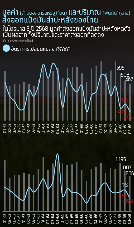 การส่งออกมันสำปะหลังไตรมาส 3 หดตัว