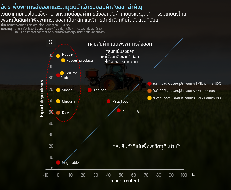 เงินบาทที่มีแนวโน้มแข็งค่าอาจกระทบต่อมูลค่าการส่งออกสินค้าเกษตรและอุตสาหกรรมเกษตรไทย