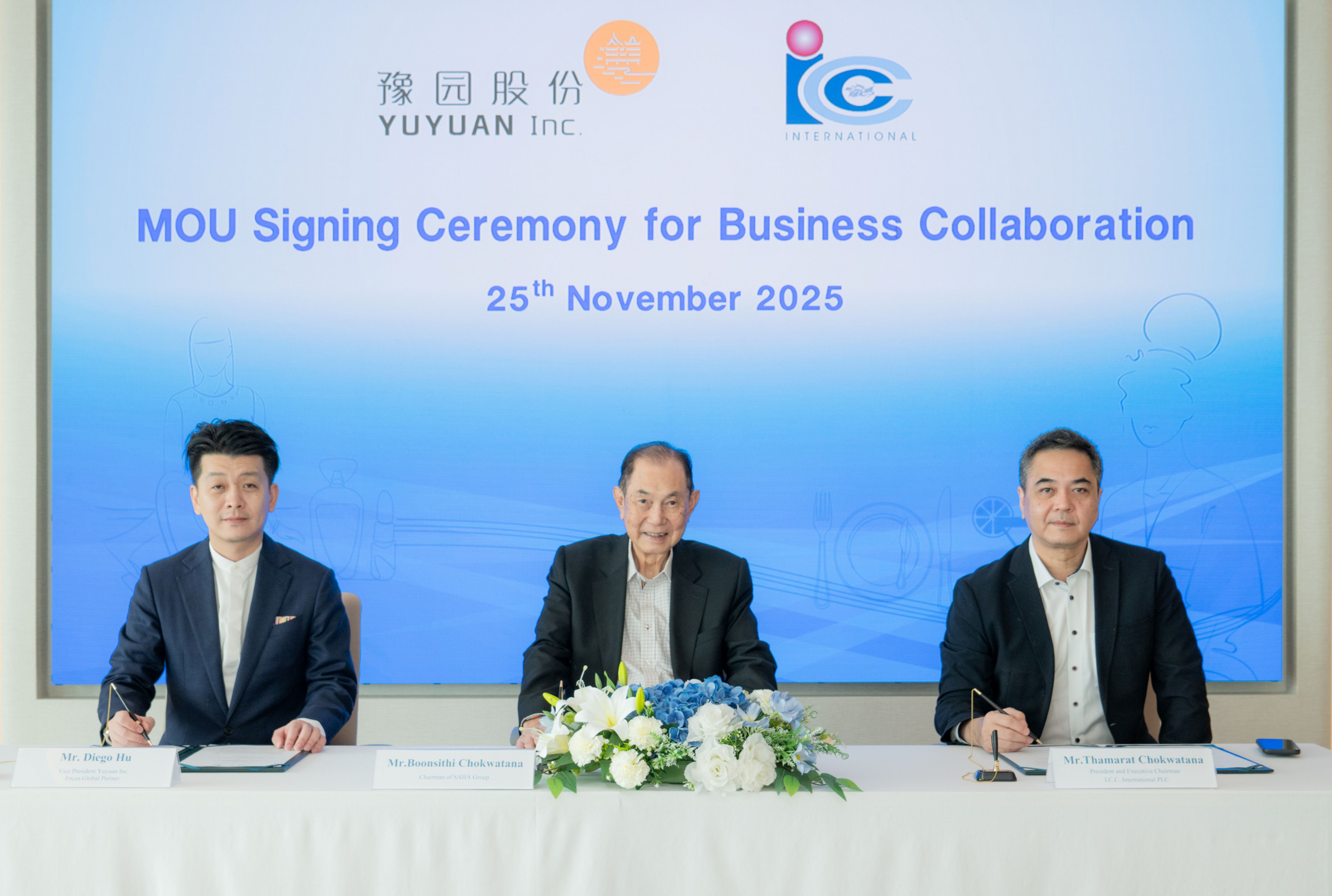 นายธรรมรัตน์ โชควัฒนา กรรมการผู้อำนวยการและประธานกรรมการบริหาร บริษัท ไอ.ซี.ซี. อินเตอร์เนชั่นแนล จำกัด (มหาชน) เปิดเผยว่า เครือสหพัฒน์ และ ยู่หยวน กรุ๊ป Shanghai Yuyuan Tourist Mart (Group) Co.,Ltd. หรือ YUYUAN Inc. จากประเทศจีน ได้ลงนามบันทึกความร่วมมือ (MOU) โดยมุ่งขยายศักยภาพทางธุรกิจใน 4 หมวดหลัก ได้แก่ Beauty, Fashion, Food & Beverage และ Gold Jewelry ซึ่งเป็นตลาดที่เติบโตอย่างต่อเนื่องและมีความต้องการสูงในภูมิภาคอาเซียน