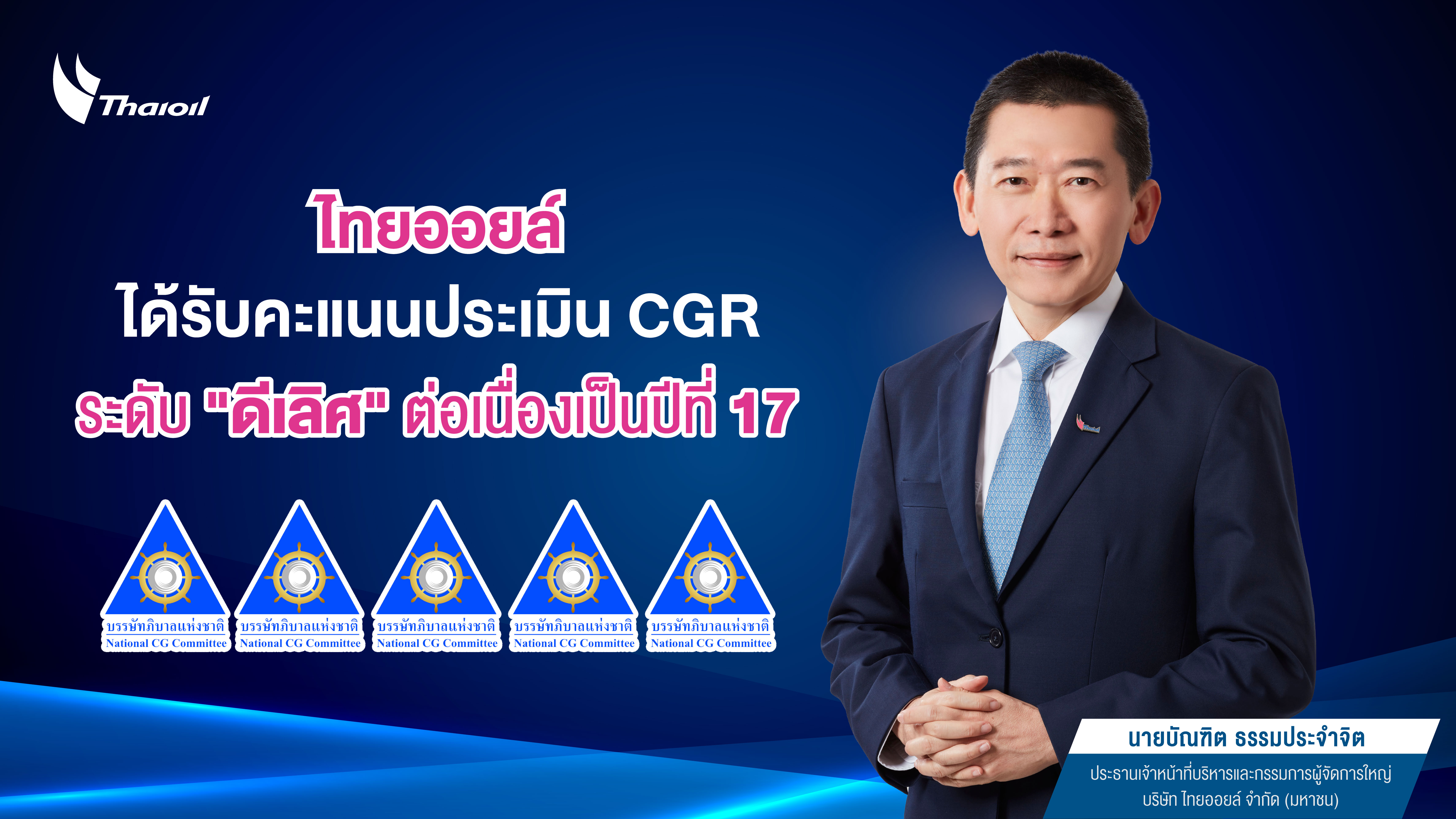 เมื่อเร็วๆ นี้ บริษัท ไทยออยล์ จำกัด (มหาชน) ได้รับคะแนนการประเมินการกำกับดูแลกิจการในระดับ “ดีเลิศ” (Excellent) หรือ 5 ตราสัญลักษณ์ ซึ่งเป็นระดับสูงสุด ต่อเนื่องเป็นปีที่ 17 และยังคงอยู่ในกลุ่ม TOP QUARTILE ของบริษัทจดทะเบียนที่มีมูลค่าหลักทรัพย์ตามราคาตลาดตั้งแต่ 100,000 ล้านบาทขึ้นไปจากการประกาศผลสำรวจการกำกับดูแลกิจการของบริษัทจดทะเบียนไทย (Corporate Governance Report of Thai Listed Companies: CGR) ประจำปี 2568 ซึ่งจัดขึ้นโดยสมาคมส่งเสริมสถาบันกรรมการบริษัทไทย (IOD) ร่วมกับตลาดหลักทรัพย์แห่งประเทศไทย (SET)
