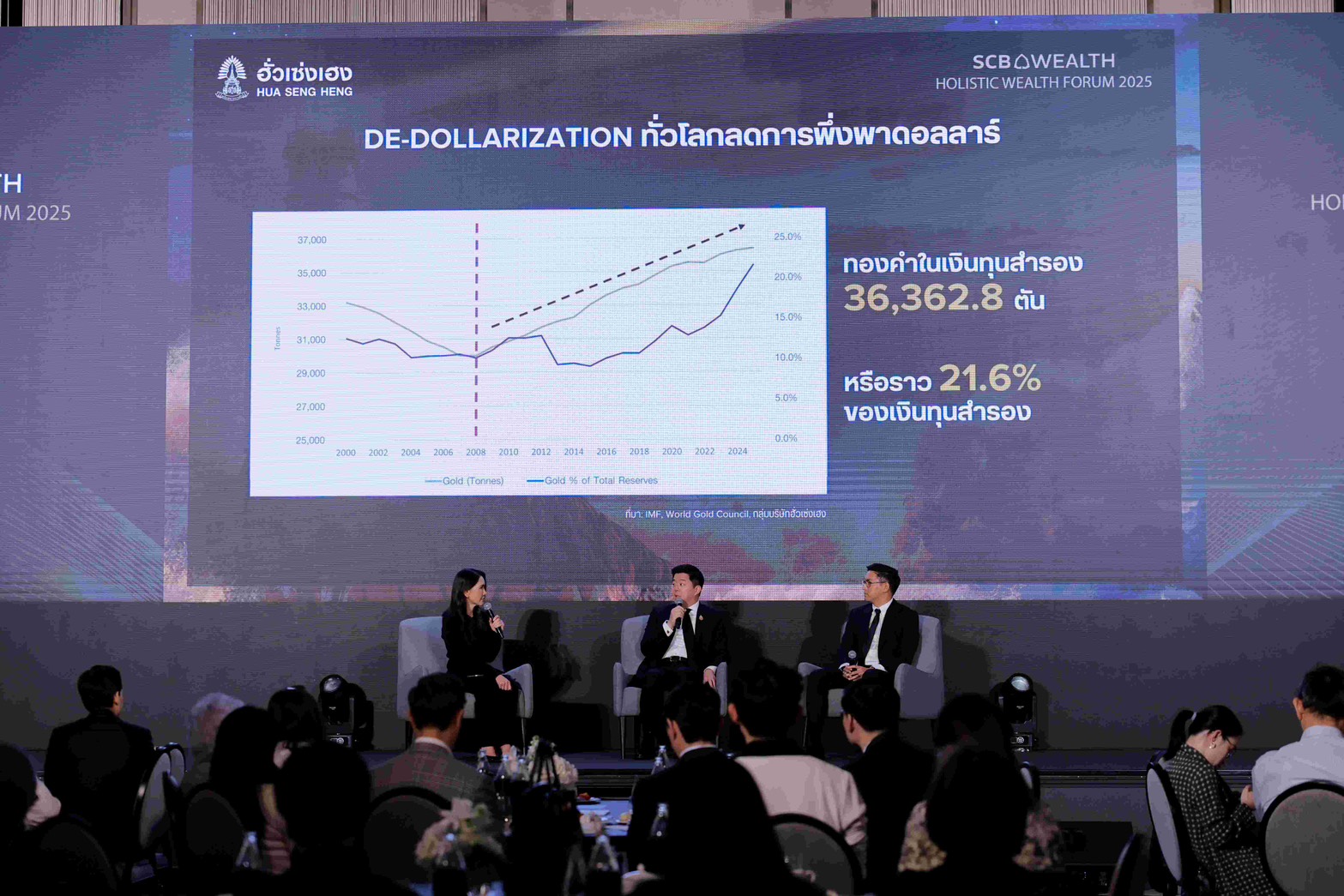 SCB WEALTH จัดสัมมนา SCB WEALTH: Holistic Wealth Forum 2025 ภายใต้ธีม Storm Shift  ผนึกผู้เชี่ยวชาญชั้นนำระดับประเทศและโลก มอบ “เข็มทิศทางการลงทุน”ให้แก่ลูกค้าเพื่อฝ่าพายุเศรษฐกิจโลก มองปี 2569 เป็นปีหัวเลี้ยวหัวต่อท่ามกลางพายุลูกใหญ่ ทั้งจากภูมิรัฐศาสตร์ เทคโนโลยี AI และโครงสร้างเศรษฐกิจโลกที่เปลี่ยนไป มองประเทศไทยกลับอยู่ในจังหวะ “โอกาสทอง” จากตัวเลขของ BOI เม็ดเงินลงทุนต่างชาติที่เพิ่มขึ้นอย่างก้าวกระโดด ด้านตลาดทุนและBOI เร่งผลักดันเศรษฐกิจไทยสู่ New Economy และ Third Wave ในเทคโนโลยี AI, Semiconductor และ Data Center ส่วน BlackRock เผยคลื่น AI Infrastructure จะเป็นตัวขับเคลื่อนเศรษฐกิจโลกครั้งใหญ่ ฮั่วเซ่งเฮง คาดทองคำปี 2569 ยังเป็นขาขึ้น มีโอกาสแตะ 4,700 ดอลลาร์สหรัฐฯต่อทรอยออนซ์ SCBFM ประเมินเงินบาทผันผวนในกรอบ 31-33 บาทต่อดอลลาร์สหรัฐฯ ปิดท้ายด้วยการส่งต่อธุรกิจและความมั่งคั่งผ่าน Family Office การจัดทำธรรมนูญครอบครัวเป็นสิ่งจำเป็น แนะหากลไกที่ทำให้การไกล่เกลี่ยเป็นกลาง เพื่อช่วยปกป้องFamily Wealth จากพายุภายในให้มีความยั่งยืน