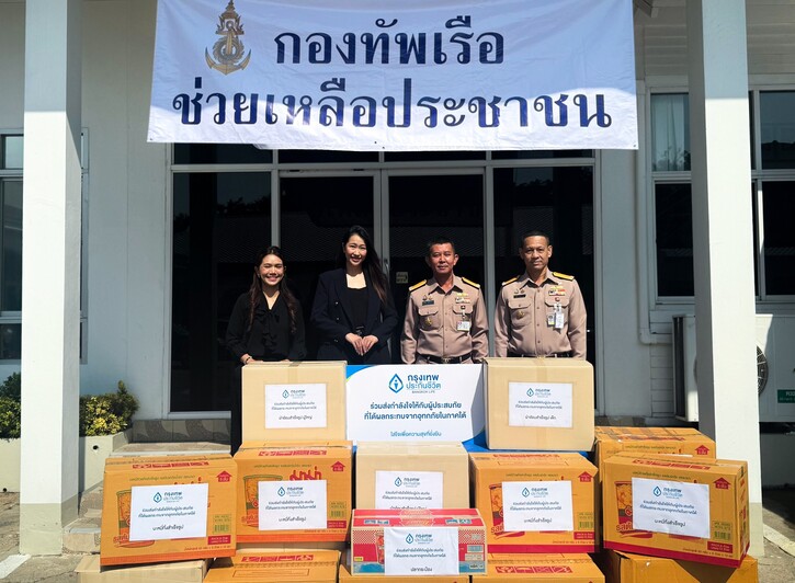 กรุงเทพประกันชีวิต เดินหน้าสานต่อพันธกิจองค์กร ส่งมอบความใส่ใจ และห่วงใยแก่ผู้ได้รับผลกระทบจากอุทกภัยครั้งใหญ่ในภาคใต้ โดยตัวแทนคณะผู้บริหาร นางสาวศริฐณี ศิริสมบูรณ์ ผู้จัดการอาวุโส ส่วนงานประชาสัมพันธ์และกิจกรรมเพื่อสังคม (ที่ 2 จากซ้าย) ได้ส่งมอบสิ่งของอำนวยความสะดวกต่อการดำรงชีวิต ให้แก่กรมกิจการพลเรือนทหารเรือ ได้แก่ บะหมี่กึ่งสำเร็จรูป อาหารพร้อมทาน อาหารกระป๋อง และเครื่องอุปโภค อาทิ ผ้าอนามัย ผ้าอ้อมสำหรับเด็ก ผ้าอ้อมสำหรับผู้ใหญ่ เพื่อส่งต่อไปยังประชาชนผู้ที่ได้รับผลกระทบ ใน อำเภอหาดใหญ่ จังหวัดสงขลา เพื่อการช่วยเหลือได้อย่างทันท่วงที โดยมี พลเรือตรี ปนิธาน สิทธิโยธาคาร (ที่ 2 จากขวา) รองเจ้ากรมกิจการพลเรือนทหารเรือ เป็นผู้รับมอบ ณ กรมกิจการพลเรือน ทหารเรือ เมื่อเร็วๆ นี้