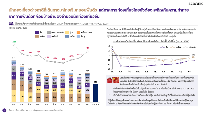 นักท่องเที่ยวต่างชาติที่เดินทางมาไทยเริ่มทยอยฟื้นตัว แต่ภาคการท่องเที่ยวยังต้องเผชิญความท้าทายจากการฟื้นตัวของนักท่องเที่ยวจีนที่ค่อนข้างช้า