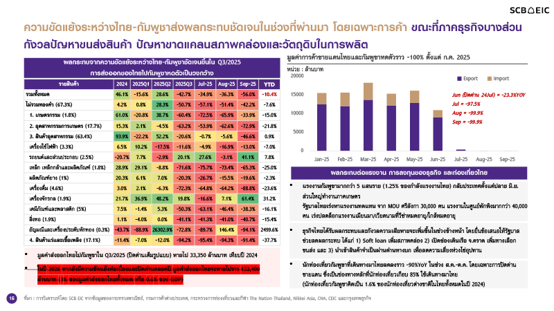 ส่งออกจะกลับมาหดตัวจากหลายปัจจัย ทั้งผล Front-loading ที่หมดไป ความเสี่ยงภาษีนำเข้าเพิ่มเติมของสหรัฐฯ เศรษฐกิจโลกชะลอตัว และการแข่งขันสินค้าจีนรุนแรงขึ้น
