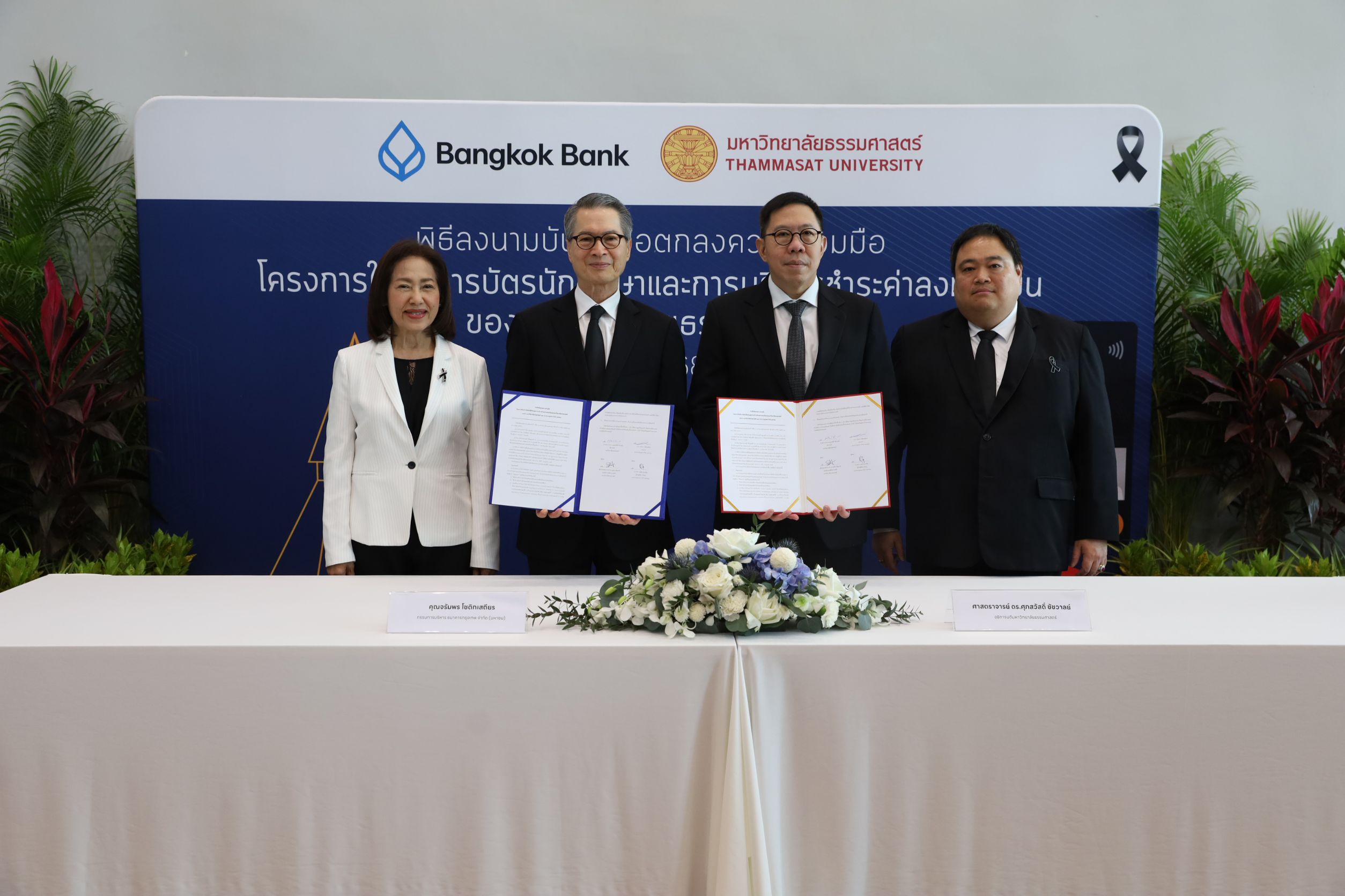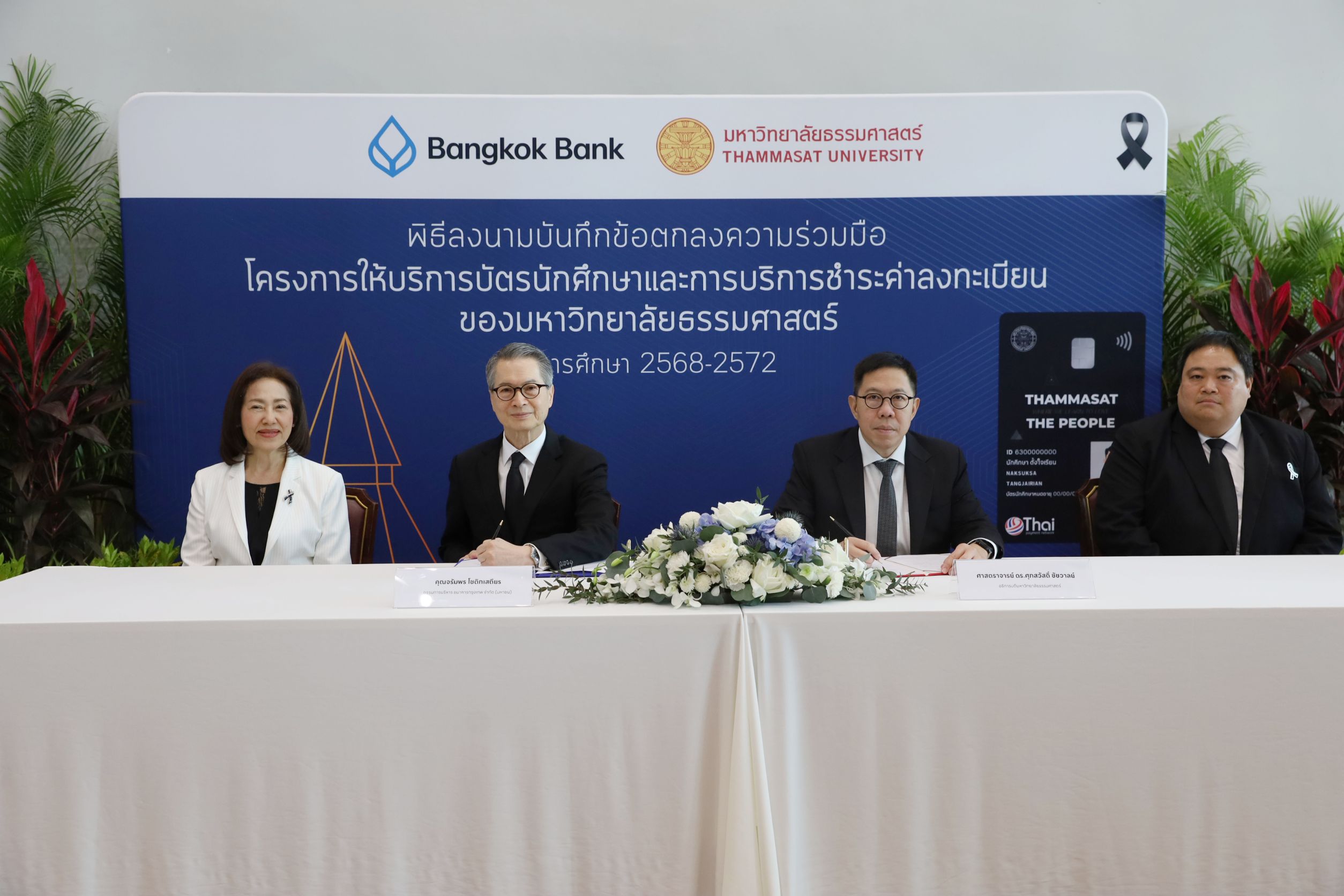 มหาวิทยาลัยธรรมศาสตร์ และธนาคารกรุงเทพ จำกัด (มหาชน) ลงนามบันทึกข้อตกลงความร่วมมือ (MOU) ในโครงการให้บริการบัตรนักศึกษา และการบริการชำระค่าลงทะเบียนของมหาวิทยาลัยธรรมศาสตร์ ปีการศึกษา 2568-2572 เพื่อยกระดับโครงสร้างพื้นฐานดิจิทัลและระบบการให้บริการของมหาวิทยาลัยอย่างครบวงจร โดยมี ศาสตราจารย์ ดร.ศุภสวัสดิ์ ชัชวาลย์ อธิการบดี มหาวิทยาลัยธรรมศาสตร์ และ นายจรัมพร โชติกเสถียร กรรมการบริหาร ธนาคารกรุงเทพ จำกัด (มหาชน) ร่วมลงนามในครั้งนี้ ณ วันที่ 28 พฤศจิกายน 2568 ณ มหาวิทยาลัยธรรมศาสตร์