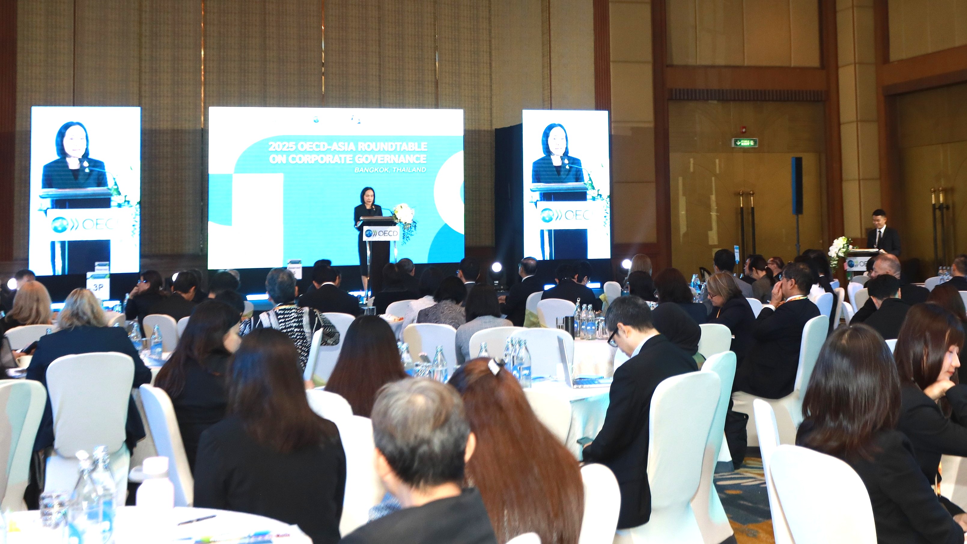 สำนักงานคณะกรรมการกำกับหลักทรัพย์และตลาดหลักทรัพย์ (ก.ล.ต.) ตลาดหลักทรัพย์แห่งประเทศ ไทย และองค์การเพื่อความร่วมมือทางเศรษฐกิจและการพัฒนา (OECD) ได้ร่วมกันจัดงานประชุม OECD-Asia Roundtable on Corporate Governance 2025 ซึ่งเป็นเวทีระดับภูมิภาคระหว่างประเทศในเอเชียและ OECD เพื่อส่งเสริมการแลกเปลี่ยนเชิงนโยบายด้านบรรษัทภิบาล การระดมทุนและความยั่งยืนของภาคธุรกิจ โดยการประชุมครั้งนี้มีผู้เข้าร่วมกว่า 150 คน จาก 23 ประเทศ ประกอบไปด้วย ผู้บริหารระดับสูงและผู้แทนจากหน่วยงานภาครัฐและเอกชนทั้งในประเทศและต่างประเทศ เพื่อร่วมแลกเปลี่ยนประสบการณ์และแนวปฏิบัติที่ดีในการกำกับดูแลกิจการและความยั่งยืนขององค์กร