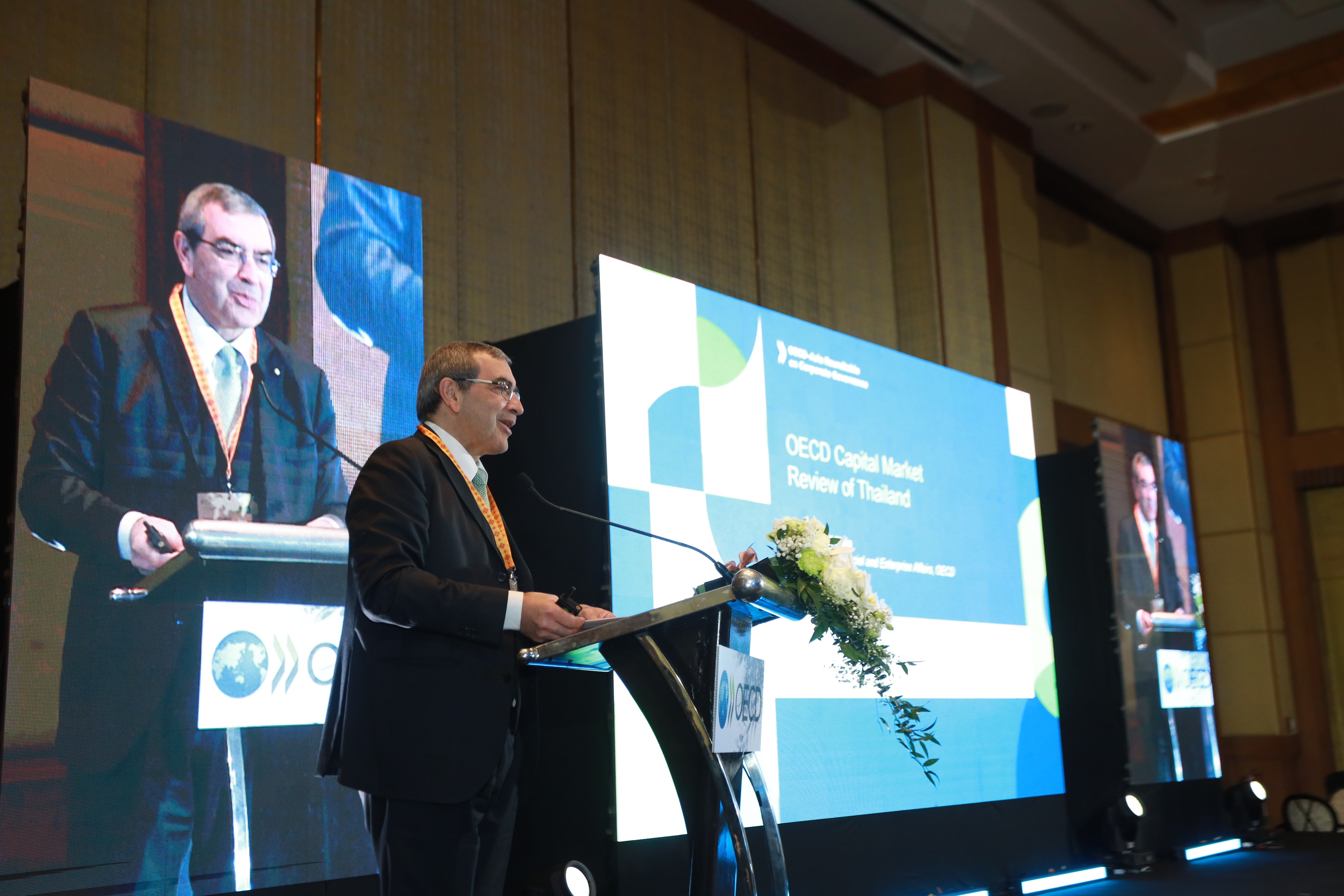 Carmine Di Noia, OECD Director for Financial Affairs, กล่าวว่า “การปฏิรูปตลาดทุนไทยที่ผ่านมา และความมุ่งมั่นอย่างต่อเนื่องในการพัฒนามาตรฐานการกำกับดูแลกิจการที่ดี สะท้อนให้เห็นถึงภาวะผู้นำที่แข็งแกร่งในการส่งเสริมตลาดทุนที่โปร่งใส มีประสิทธิภาพ และเปิดกว้าง ซึ่งสอดคล้องกับหลักการกำกับดูแลกิจการของ G20/OECD ความร่วมมือระหว่าง OECD กับ ก.ล.ต. มีคุณค่าอย่างยิ่ง และเราเชื่อว่ารายงานการศึกษาทบทวนตลาดทุนไทยครั้งนี้จะเป็นเครื่องมือสำคัญในการสนับสนุนบรรยากาศการลงทุนและพลวัตโดยรวมของเศรษฐกิจไทย”