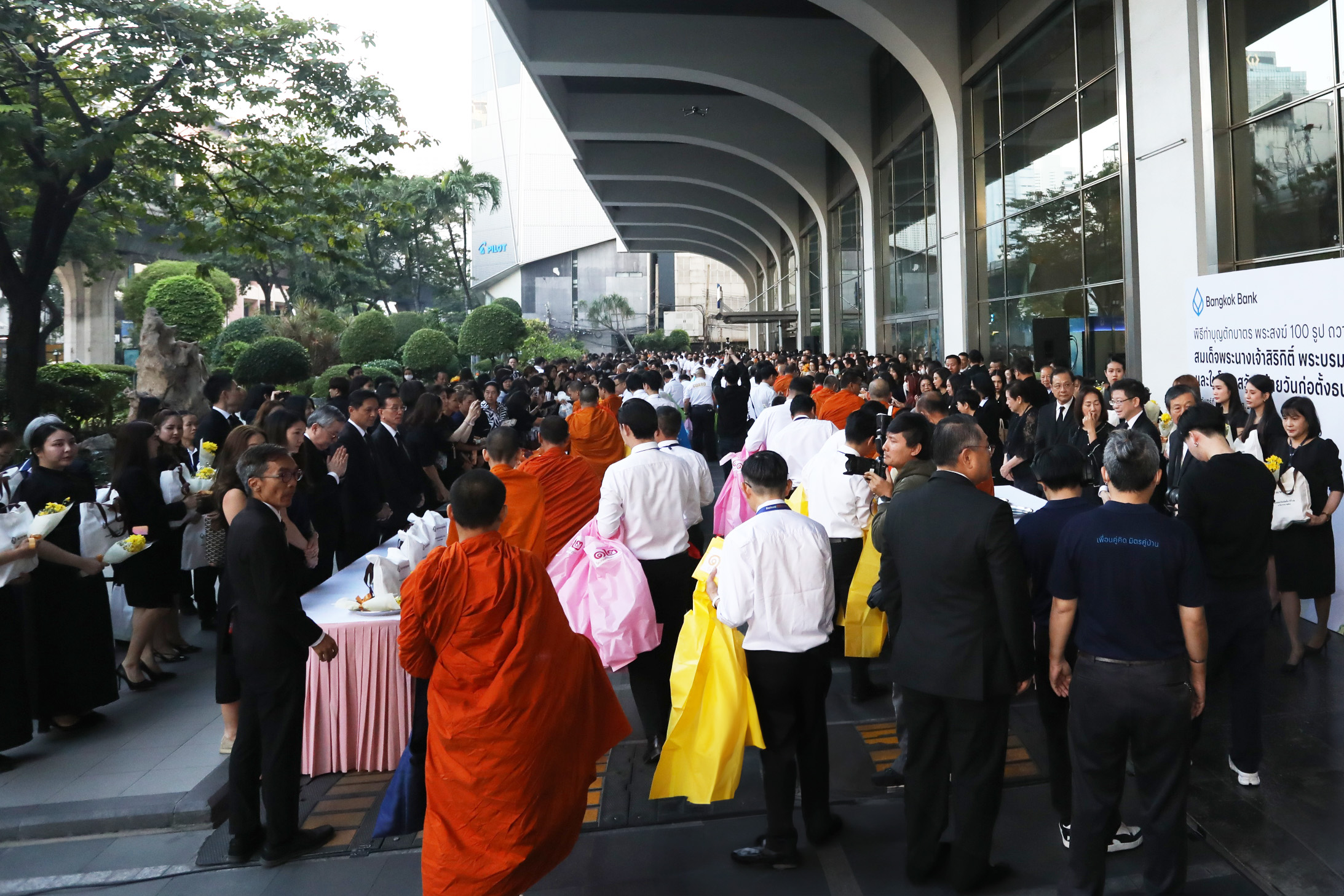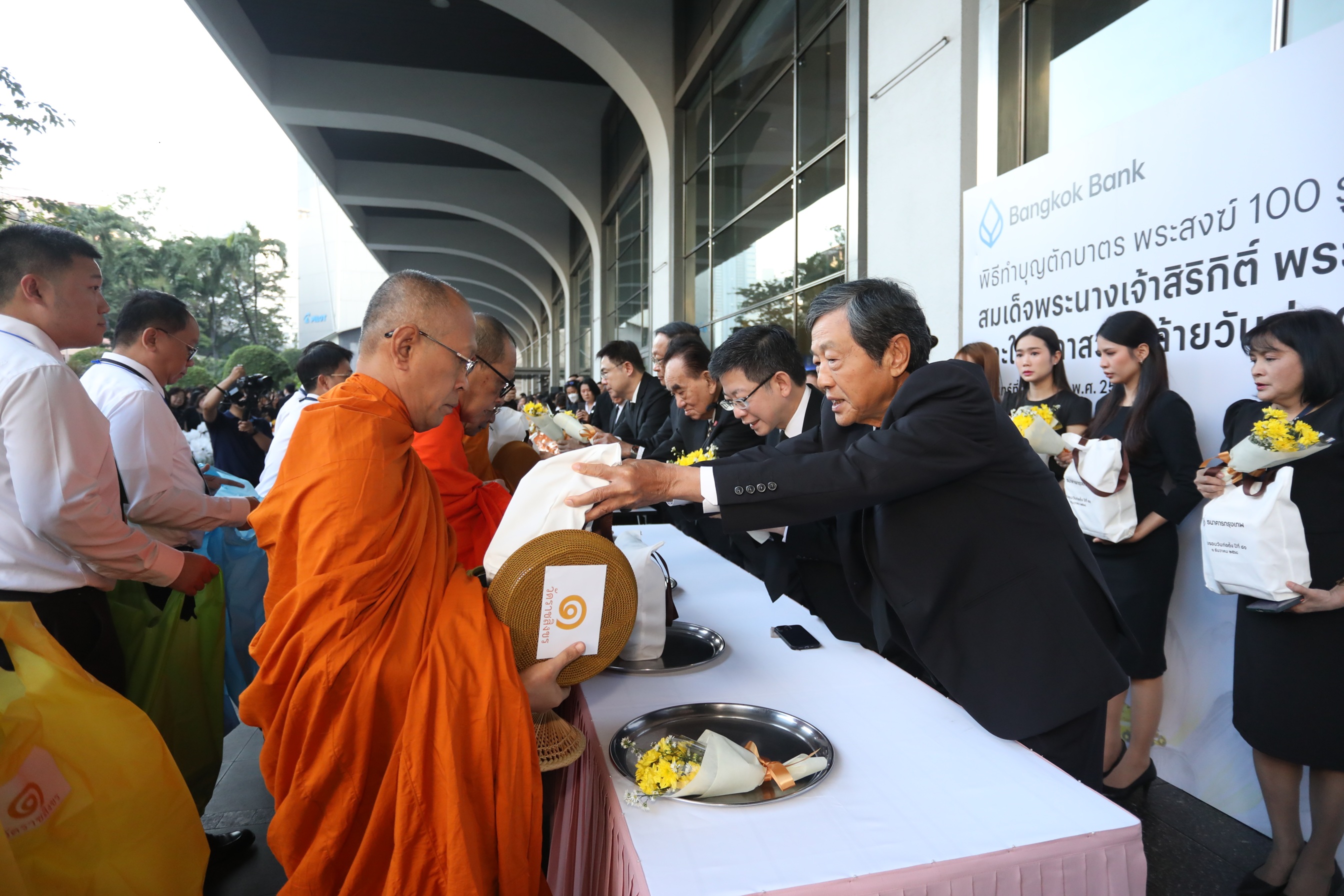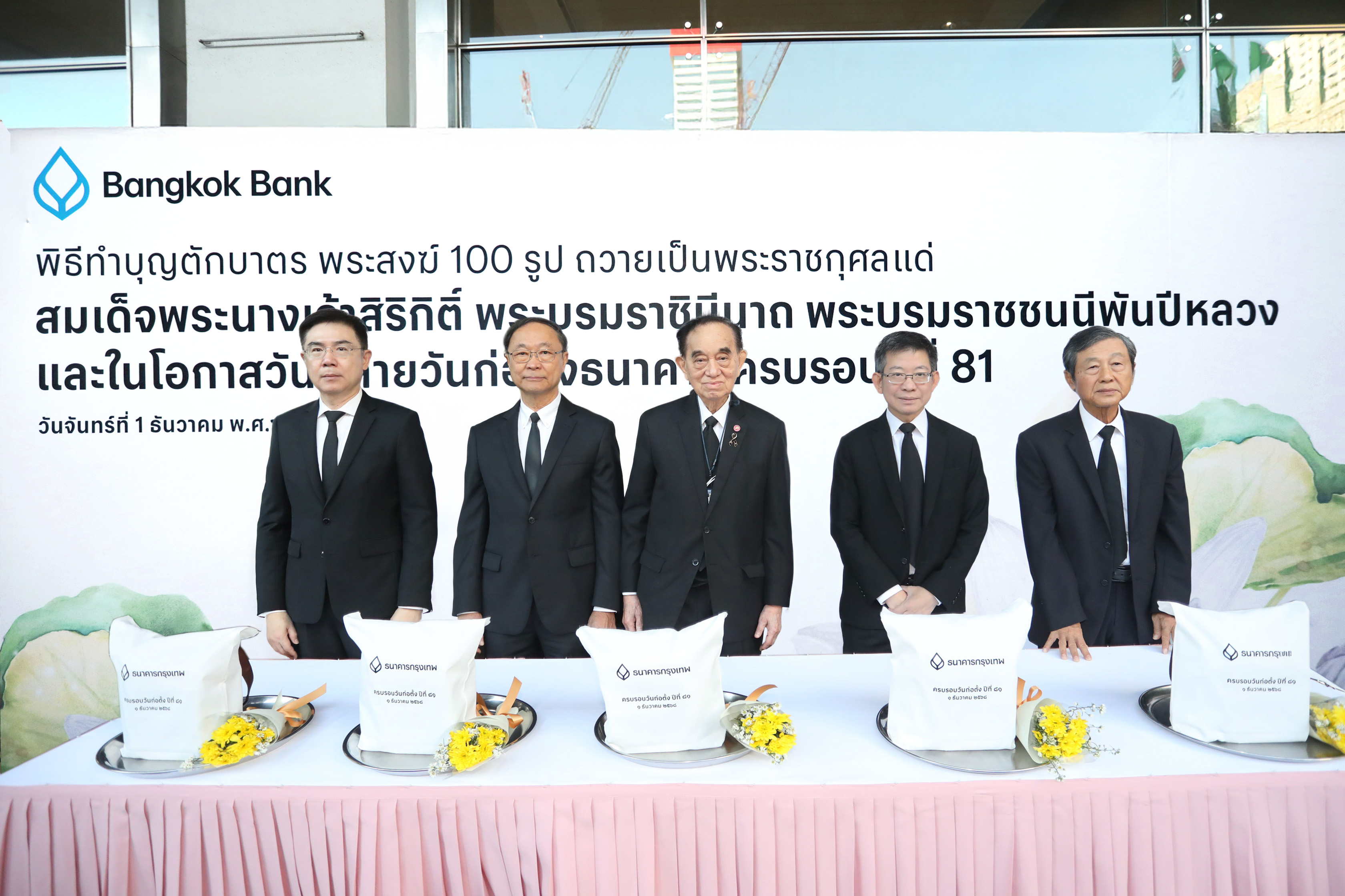 ถวายเป็นพระราชกุศล - นายอมร จันทรสมบูรณ์ นายอรุณ จิรชวาลา นายศิริ จิระพงษ์พันธ์ นายพิเชฐ ดุรงคเวโรจน์ นายบัณฑิต เอื้ออาภรณ์ นายวีระพัฒน์ ถกลศรี นายจรัมพร โชติกเสถียร กรรมการธนาคาร และนายกอบศักดิ์ ภูตระกูล กรรมการรองผู้จัดการใหญ่ พร้อมด้วยคณะผู้บริหาร และพนักงานธนาคารกรุงเทพ จำกัด (มหาชน) ร่วมทำบุญตักบาตรพระสงฆ์ 100 รูป ถวายเป็นพระราชกุศลแด่ สมเด็จพระนางเจ้าสิริกิติ์ พระบรมราชินีนาถ พระบรมราชชนนีพันปีหลวง เพื่อแสดงออกถึงความจงรักภักดี และน้อมสำนึกในพระมหากรุณาธิคุณอันหาที่สุดมิได้ ที่ทรงมีต่อพสกนิกรชาวไทยมาอย่างยาวนาน และในโอกาสวันคล้ายวันก่อตั้งธนาคารครบรอบปีที่ 81 เพื่อสร้างความเป็นสิริมงคลในวาระที่ธนาคารกรุงเทพ ก้าวเข้าสู่ทศวรรษที่ 9 ด้วยเจตนารมณ์การเป็น “เพื่อนคู่คิด มิตรคู่บ้าน” ในวันจันทร์ที่ 1 ธันวาคม 2568 โดยธนาคาร ได้นิมนต์พระสงฆ์ 100 รูป จาก 5 พระอารามหลวง ได้แก่ วัดพระเชตุพนวิมลมังคลารามราชวรมหาวิหารวัดเทพศิรินทราวาสราชวรวิหาร วัดปทุมคงคาราชวรวิหาร วัดไตรมิตรวิทยารามวรวิหาร และวัดราชสิงขร พระอารามหลวง เพื่อประกอบพิธีสงฆ์และรับบิณฑบาต ณ บริเวณลานหน้าอาคารสำนักงานใหญ่ ธนาคารกรุงเทพ ถนนสีลม