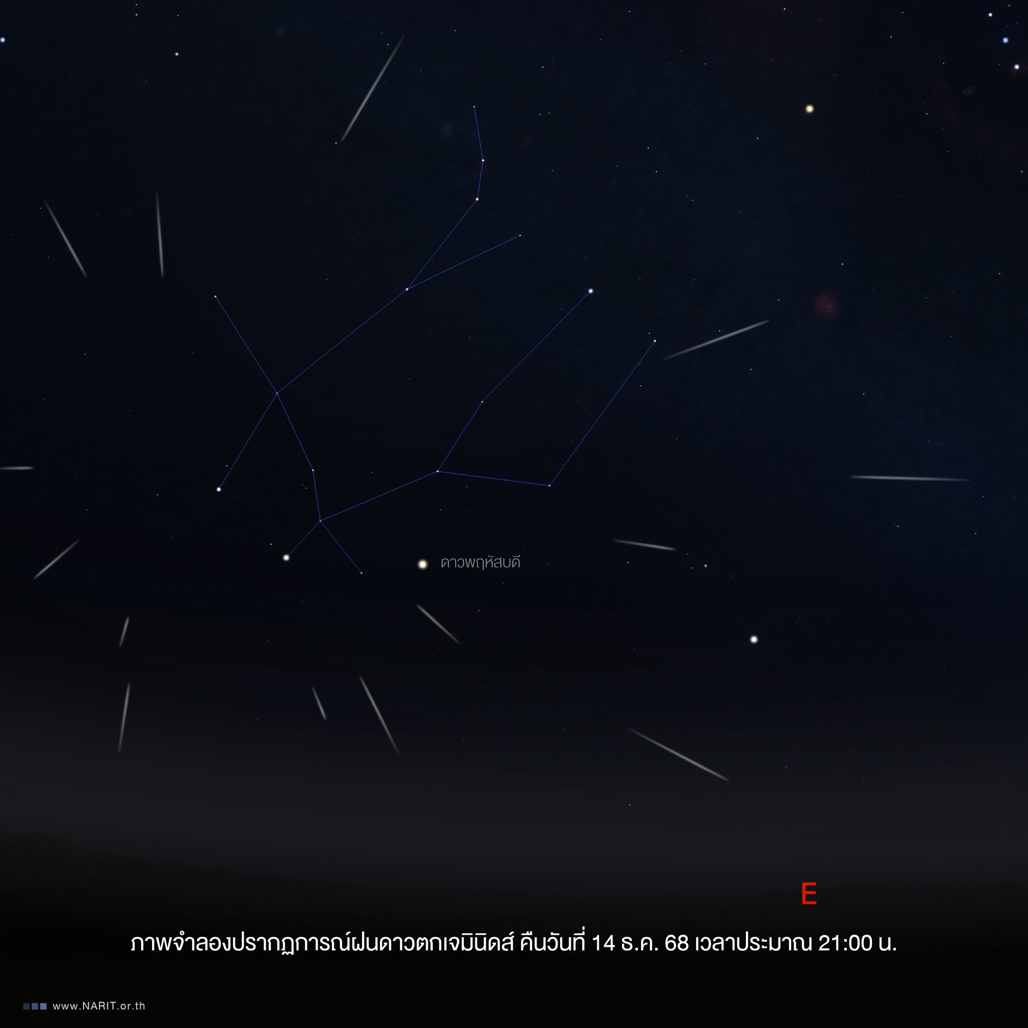 สถาบันวิจัยดาราศาสตร์แห่งชาติ (องค์การมหาชน) (สดร. หรือ NARIT) กระทรวงการอุดมศึกษา วิทยาศาสตร์ วิจัย และนวัตกรรม (อว.) เชิญชวนชาวไทยชม “ฝนดาวตกเจมินิดส์” คืน 14 - รุ่งเช้า 15 ธันวาคม 2568 เริ่มสังเกตได้ตั้งแต่เวลาประมาณ 20:00 น. จนถึง 02:30 น. (หลังจากนั้นจะมีแสงจันทร์รบกวน) คาดมีอัตราการตกเฉลี่ยสูงสุดประมาณ 120 - 150 ดวงต่อชั่วโมง ช่วงหลังเที่ยงคืนเป็นต้นไป ผู้สนใจชมได้ด้วย ตาเปล่าในพื้นที่โล่ง และมืดสนิท ปราศจากแสงรบกวน ดูได้ทุกภูมิภาคทั่วไทย