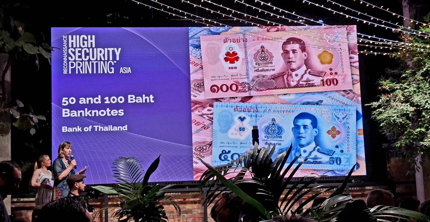 ธนบัตรพอลิเมอร์ชนิดราคา 100 บาท และ 50 บาท ของประเทศไทย ได้รับรางวัล “Best New Banknote 2025” จากงานประชุม High Security Printing Asia ครั้งที่ 25 ซึ่งจัดขึ้น ณ ประเทศมาเลเซีย โดยรางวัลดังกล่าวสะท้อนถึงความสำเร็จของประเทศไทยในการพัฒนาเทคโนโลยีธนบัตรที่ทันสมัย มีความปลอดภัยสูง และสอดคล้องกับมาตรฐานระดับสากล