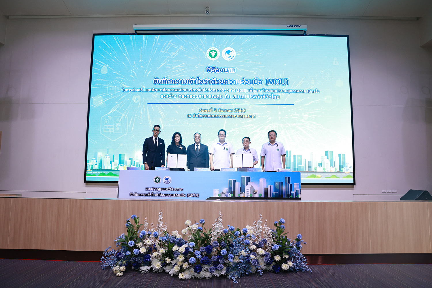 วันที่ 3 ธันวาคม 68 ที่ห้องประชุมใหญ่ ชั้น 10 สำนักงานคณะกรรมการอาหารและยา นายพัฒนา พร้อมพัฒน์ รัฐมนตรีว่าการกระทรวงสาธารณสุข เป็นประธานพิธีลงนามบันทึกความเข้าใจว่าด้วยความร่วมมือ (MOU) ในการส่งเสริมและพัฒนาศักยภาพหน่วยบริการในสังกัดกระทรวงสาธารณสุข เพื่อรองรับระบบประกันสุขภาพภาคสมัครใจ ระหว่างกระทรวงสาธารณสุข กับสมาคมประกันชีวิตไทย โดยมี นพ.สมฤกษ์ จึงสมาน ปลัดกระทรวงสาธารณสุข นางนุสรา (อัสสกุล) บัญญัติปิยพจน์ นายกสมาคมประกันชีวิตไทย และนายสาระ ล่ำซำ อุปนายกฝ่ายการตลาด สมาคมประกันชีวิตไทย เป็นผู้ลงนาม และมี นายชูฉัตร ประมูลผล เลขาธิการคณะกรรมการกำกับและส่งเสริมการประกอบธุรกิจประกันภัย (คปภ.) และผู้อำนวยการโรงพยาบาลนำร่อง 28 แห่งจากทั่วประเทศร่วมเป็นสักขีพยาน