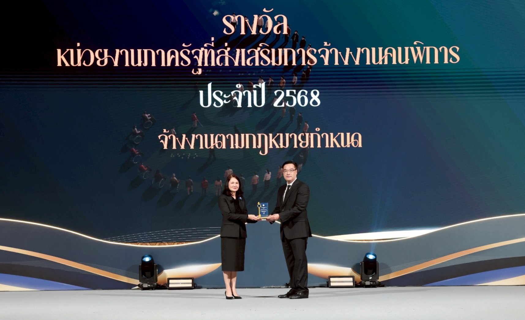 นายโมกุล โปษยะพิสิษฐ์ รองผู้จัดการทั่วไปอาวุโส สายงานการเงิน บรรษัทประกันสินเชื่ออุตสาหกรรมขนาดย่อม (บสย.) เป็นตัวแทนรับมอบโล่ประกาศเกียรติคุณ รางวัลหน่วยงานภาครัฐส่งเสริมการจ้างงานคนพิการ ในงานวันคนพิการสากล ประจำปี 2568 จัดโดยกรมส่งเสริมและพัฒนาคุณภาพชีวิตคนพิการ กระทรวงการพัฒนาสังคมและความมั่นคงของมนุษย์ ภายใต้แนวคิด การส่งเสริมสังคมที่ครอบคลุมและเอื้อต่อคนพิการ เพื่อขับเคลื่อนความก้าวหน้าและการพัฒนาทางสังคมอย่างยั่งยืน โดยมีนายอัครา พรหมเผ่า รัฐมนตรีว่าการกระทรวงการพัฒนาสังคมและความมั่นคงของมนุษย์ เป็นประธานในพิธี ณ ห้องรอยัล จูบิลี่ บอลรูม อาคารชาเลนเจอร์ อิมแพ็ค เมืองทองธานี เมื่อวันที่ 3 ธันวาคม 2568