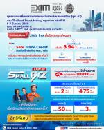 • สินเชื่อเอ็กซิมค้าขายสบายใจ (EXIM Safe Trade Credit) สนับสนุนการขยายตลาด และลดการพึ่งพาไปยังผู้ซื้อรายใดรายหนึ่ง ตลอด Value Chain วงเงินสินเชื่อสูงสุด 2 ล้านบาทต่อปี พร้อมเงินชดเชยกรณีผู้ซื้อไม่ชำระเงินค่าสินค้า อัตรารับซื้อลดตั๋วเริ่มต้น 3.94% ต่อปี (Prime Rate -2.16%) ใช้เพียงผู้บริหารหลักค้ำประกัน โดย EXIM BANK คัดกรองความเสี่ยงของผู้ซื้อก่อนทำสัญญา ช่วยเพิ่มความมั่นใจก่อนตัดสินใจซื้อขาย
