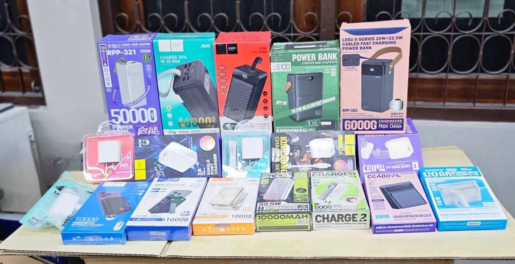 - ตรวจยึดพาวเวอร์แบงค์และหัวชาร์จ จำนวน 49,000 ชิ้น มูลค่า 10 ล้านบาท จับกุมได้ที่โกดัง