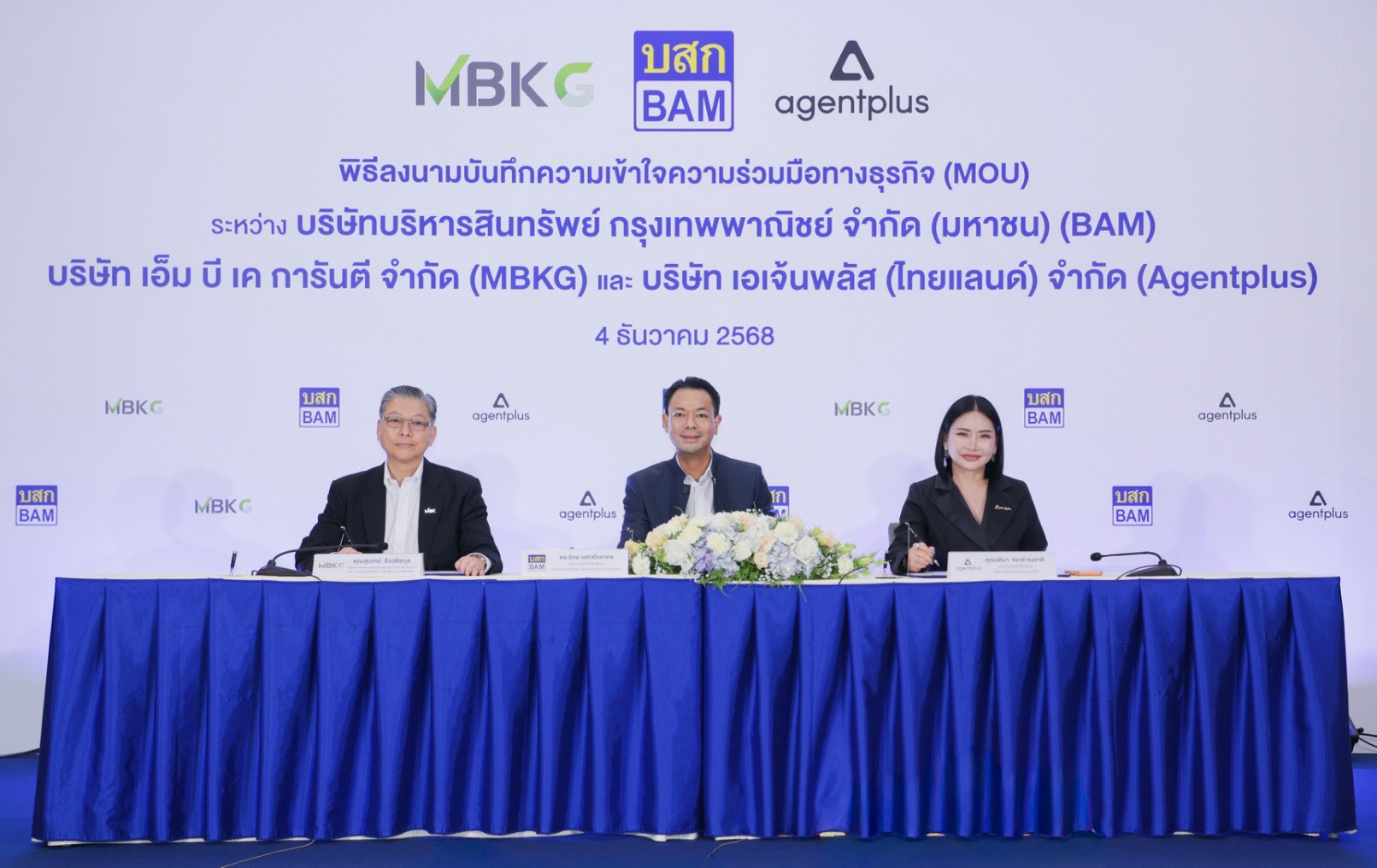 บริษัทบริหารสินทรัพย์ กรุงเทพพาณิชย์ จำกัด (มหาชน) (BAM) ได้ลงนามบันทึกข้อตกลงความร่วมมือทางธุรกิจ (MOU) บริษัท เอ็ม บี เค การันตี จำกัด (MBKG) กับ บริษัท เอเจ้นพลัส (ไทยแลนด์) จำกัด (Agentplus) และ เพื่อลดระยะเวลาในการถือครองทรัพย์ และเร่งการสร้างรายได้ รวมทั้งเพิ่มช่องทางการให้บริการลูกค้า เพื่อให้เกิดการเติบโตทางธุรกิจอย่างยั่งยืน