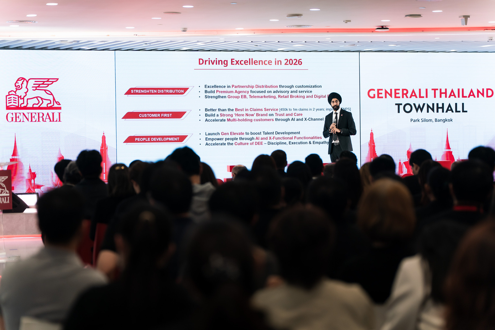 เจนเนอราลี่ ไทยแลนด์ จัดกิจกรรม Town Hall ต้อนรับผู้บริหารระดับสูงจากกลุ่มเจนเนอราลี่ และเจนเนอราลี่ ภูมิภาคเอเชีย ร่วมอัปเดตผลการดำเนินงานในปี 2025 รวมถึงแผนการดำเนินธุรกิจปี 2026 เร่งเครื่องสู่การเติบโตครั้งใหม่ ภายใต้กลยุทธ์ Lifetime Partner 27: Driving Excellence ที่มุ่งพัฒนาโครงสร้างธุรกิจ ช่องทางการขาย การบริการลูกค้า และศักยภาพบุคลากร ให้แข็งแกร่งยิ่งขึ้นในทุกมิติ