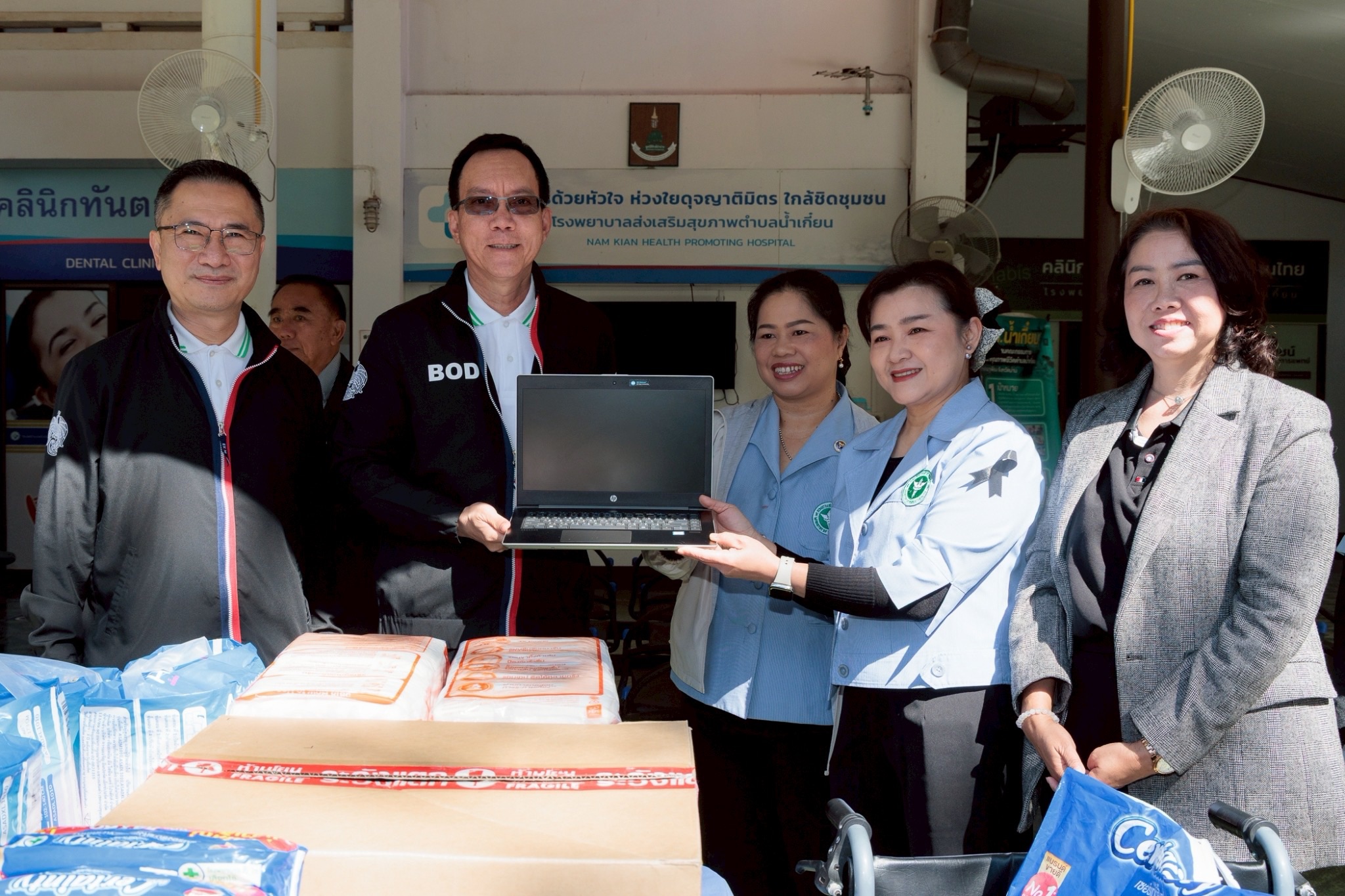 ดร.วโรทัย โกศลพิศิษฐ์กุล และนางสาวภควดี จรรยาเพศ กรรมการกำกับดูแลกิจการที่ดีและการพัฒนาอย่างยั่งยืน (CG&SD) ธนาคารเพื่อการส่งออกและนำเข้าแห่งประเทศไทย (EXIM BANK) พร้อมด้วยนายชลัช รัตนบุญนิธิ กรรมการผู้จัดการ และนางสาวดรัสวันต์ ชูวงษ์ รองกรรมการผู้จัดการ EXIM BANK นายชูศิลป์ สารรัตนะ ประธานวิสาหกิจชุมชนชีววิถีตำบลน้ำเกี๋ยน และกรรมการ บริษัท ชีววิถีเฮิร์บ จำกัด และนางสาวศิรินันท์ สารมณฐี กรรมการผู้จัดการและผู้ก่อตั้ง บริษัท ชีววิถีเฮิร์บ จำกัด มอบเครื่องคอมพิวเตอร์โน้ตบุ๊ก อุปกรณ์ดูแลผู้ป่วย และของใช้จำเป็นอื่น ๆ ให้แก่โรงพยาบาลส่งเสริมสุขภาพตำบลน้ำเกี๋ยน อำเภอภูเพียง จังหวัดน่าน ภายใต้โครงการ “EXIM CSR Strong Synergizer” เพื่อสนับสนุนการปฏิบัติงานด้านสาธารณสุขและเพิ่มประสิทธิภาพการดูแลผู้ป่วย โดยเฉพาะผู้ป่วยติดเตียงและผู้สูงวัยในชุมชน โดยมีนางสาวศิรินันท์ สารมณฐี ผู้อำนวยการโรงพยาบาลส่งเสริมสุขภาพตำบลน้ำเกี๋ยน เป็นผู้รับมอบ ณ โรงพยาบาลส่งเสริมสุขภาพตำบลน้ำเกี๋ยน อำเภอภูเพียง จังหวัดน่าน เมื่อวันที่ 1 ธันวาคม 2568